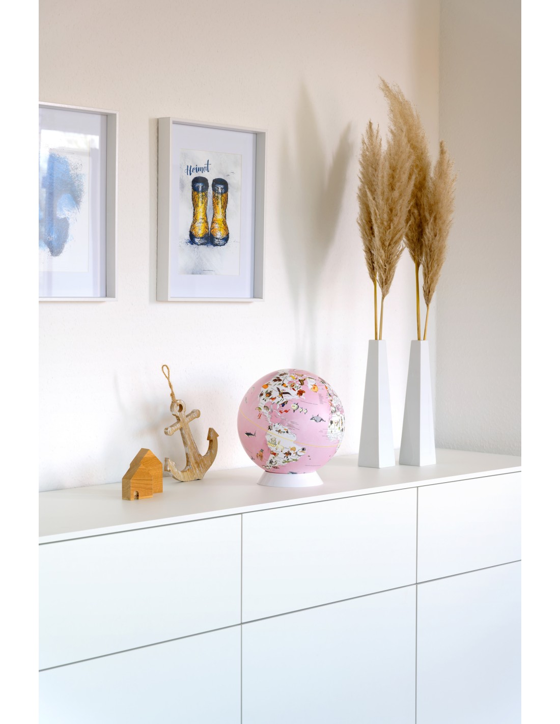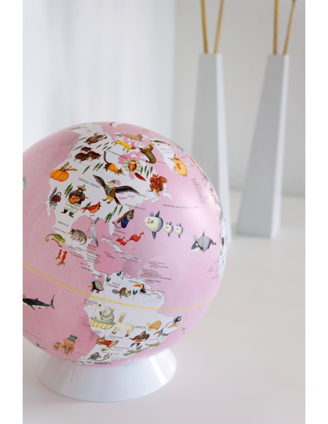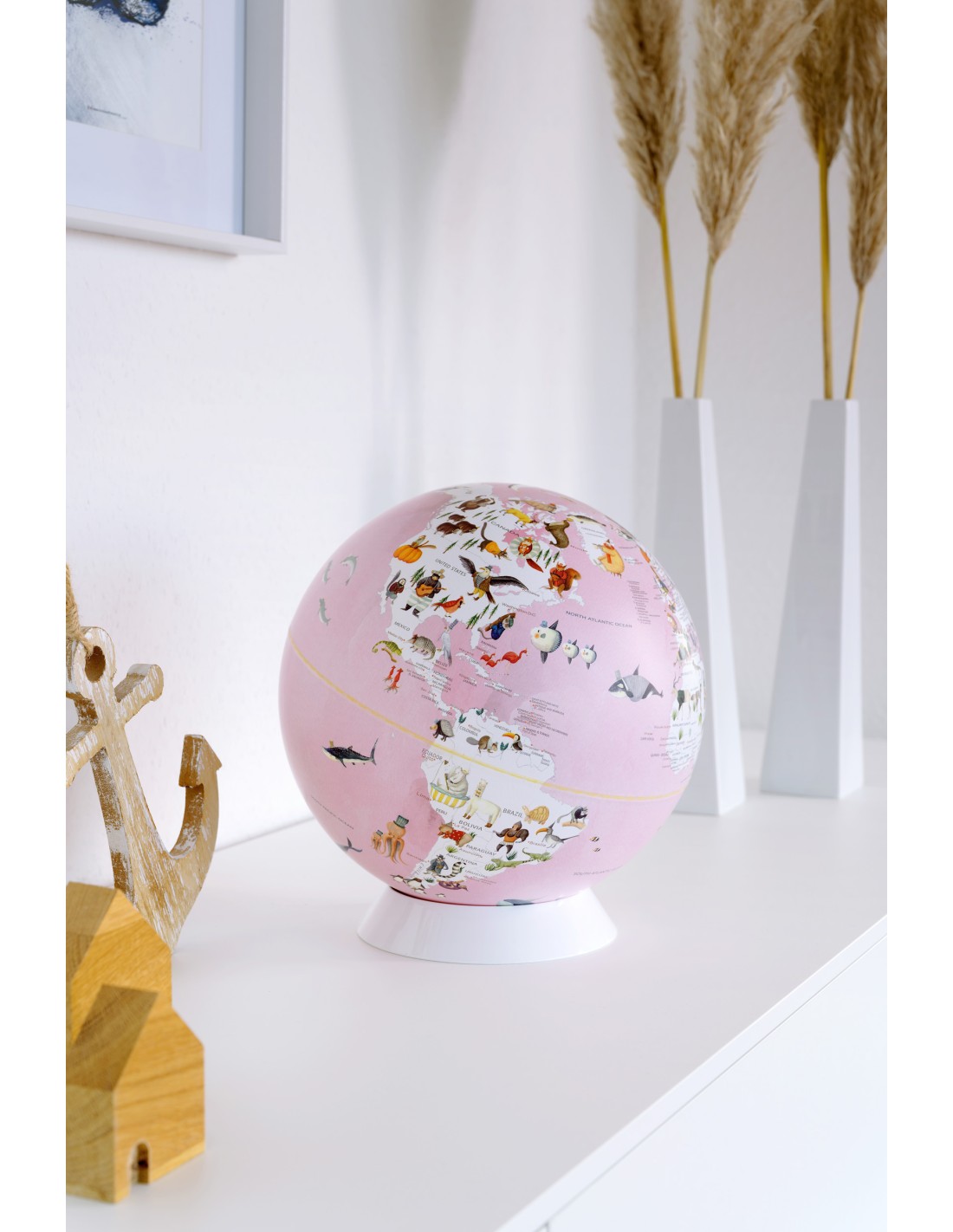 Tiersymbole wurden gestaltet durch den bekannten taiwanischen Illustrator Nan-Jun. Der 250 Millimeter große Globus ist in blauer und pinkfarbener Ausführung erhältlich. Er ruht auf einem Ring aus Kunststoff und lässt sich zum Anschauen auch herunternehmen.