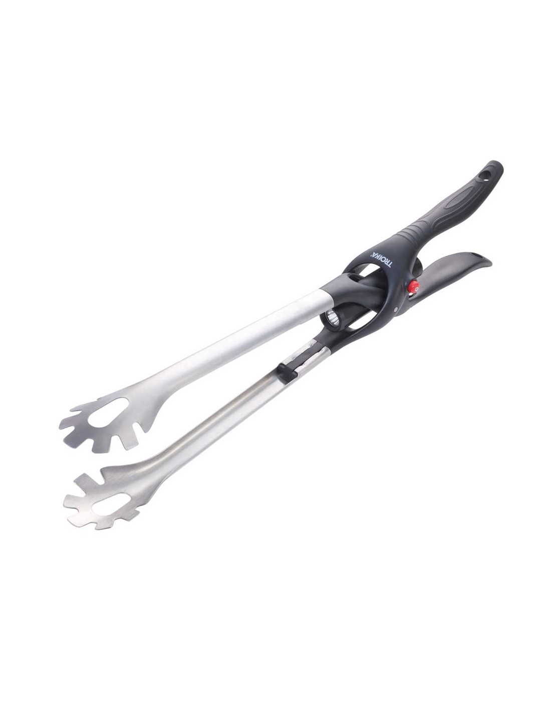 Grillzange mit herausnehmbarer Taschenlampe, warmweißes LED-Licht, inkl. AA-Batterie, Zange feststellbar, lebensmittelecht (LFGB geprüft), hitzebeständiger Kunststoffgriff, 430 Edelstahl, Kunststoff, matt, rot/schwarz/silberfarben