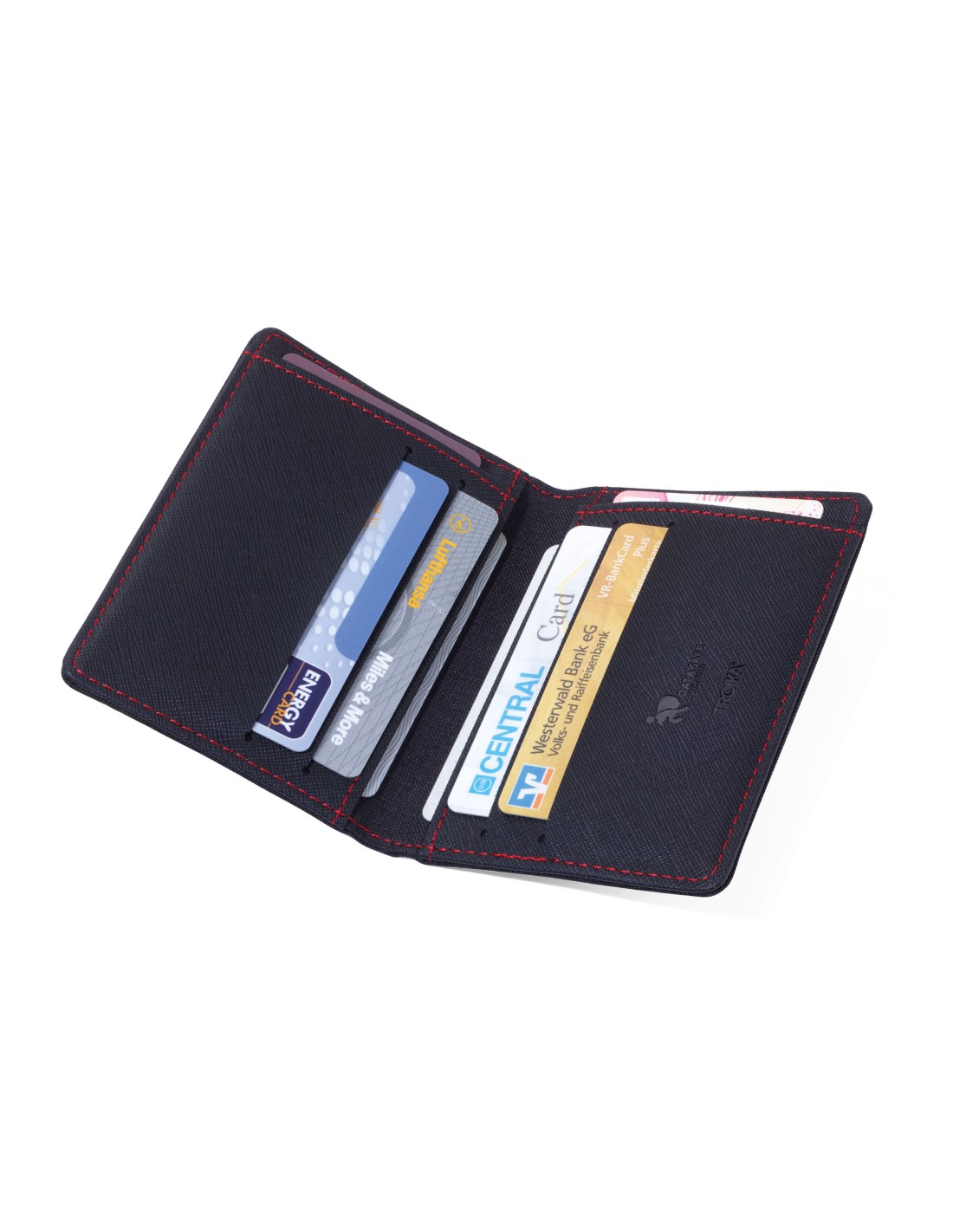 Schutzetui für Karten im Kreditkartenformat, mit Ausleseschutzfolie (für RFID-Chips), 8 Innenfächer, Polyester, schwarz