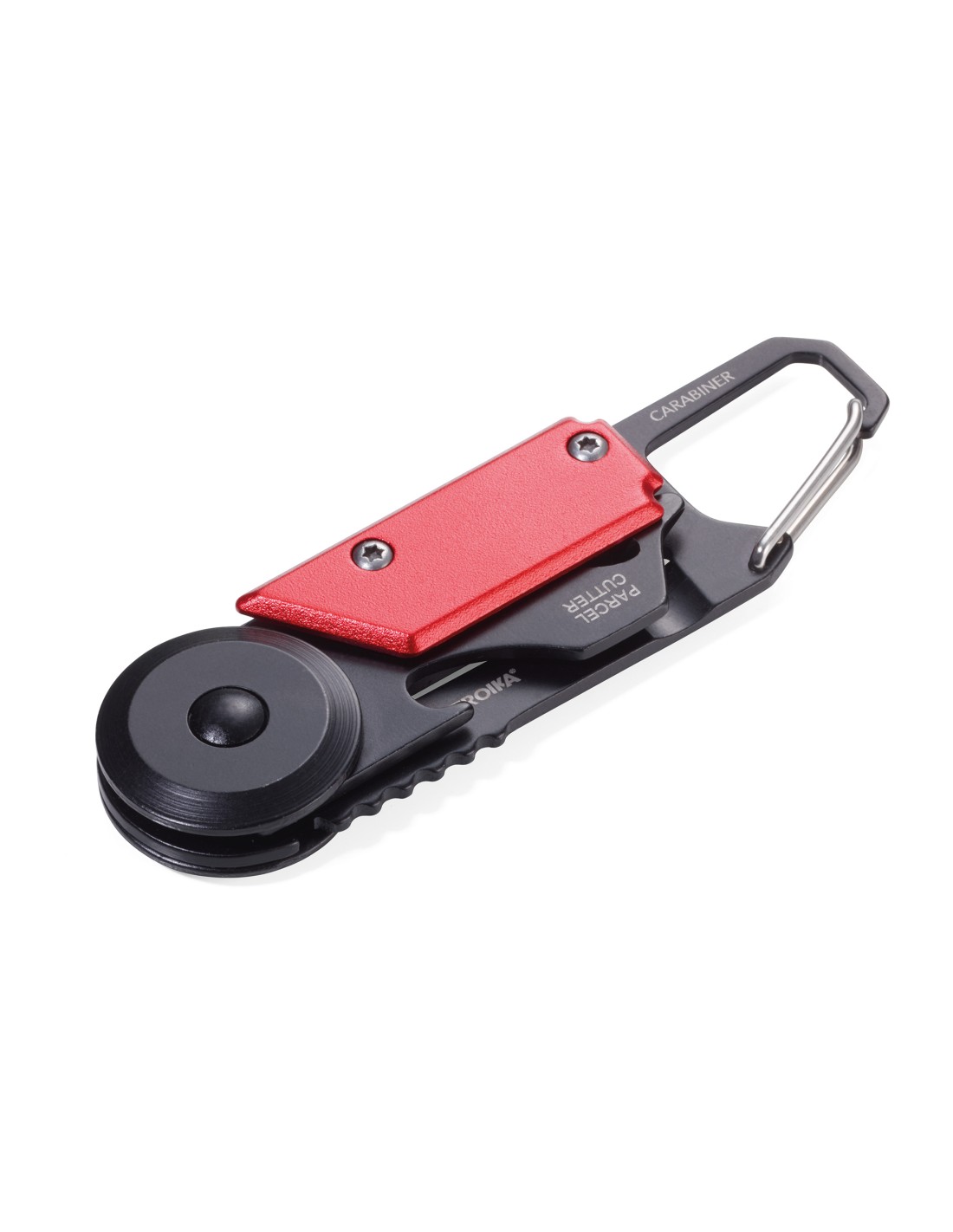 Mini-Werkzeug mit 5 Funktionen, Paketmesser, Karabinerhaken, kleine Sägeklinge, Schlitz-Schraubendreher, Flaschenöffner, 420 Edelstahl, Aluminium, rot/schwarz