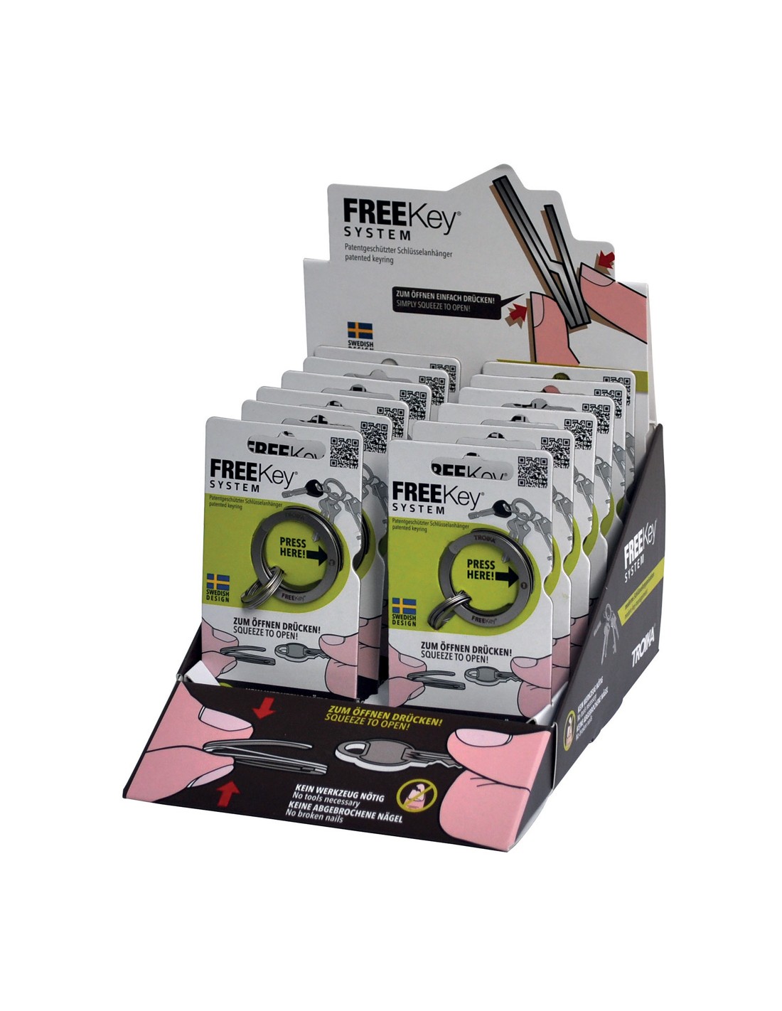 Thekendisplay inkl. 12 x FREEKEY® SYSTEM Schlüsselanhänger, 12 x KR15-02/ST, zur Selbstbedienung, Pappe, bedruckt, matt, mehrfarbig