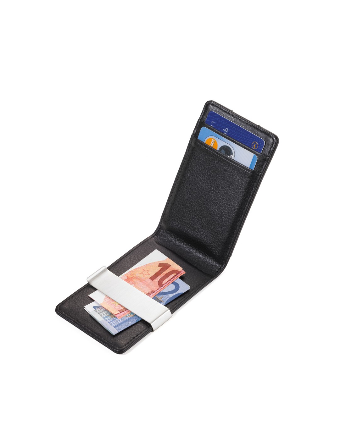 Kreditkartenetui mit Geldscheinklammer, Ausleseschutz (für RFID-Chips), Metallklammer, Außenfach für Karten, Kunstleder, Leder, Metall, schwarz