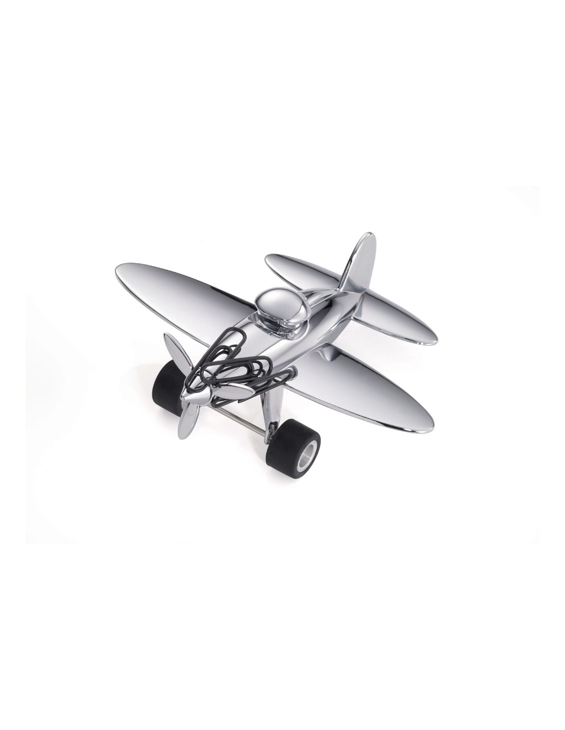 Büroklammernhalter und Briefbeschwerer, Flugzeug, Magnet für Büroklammern, inkl. 5 Büroklammern, Metallguss, verchromt, glänzend, silberfarben