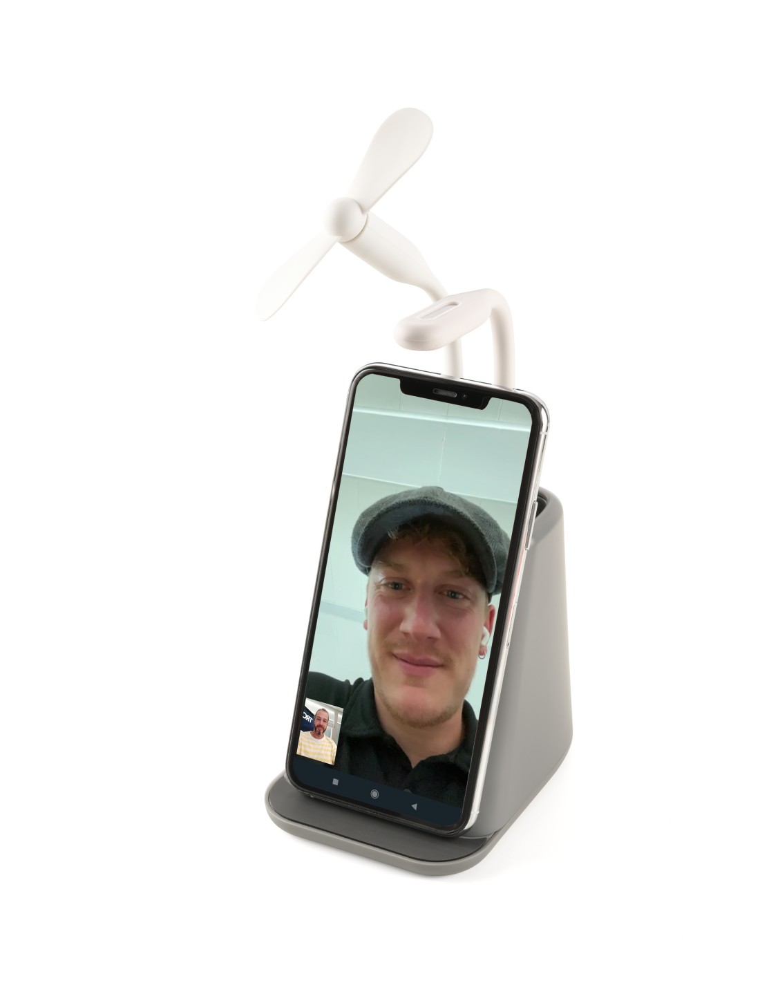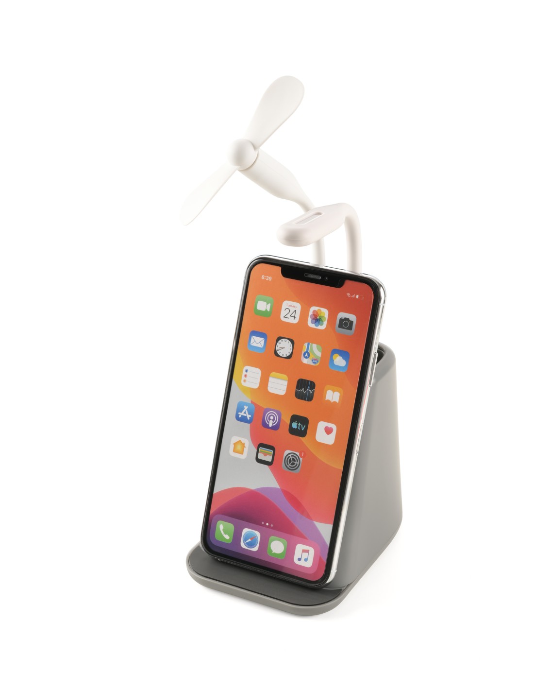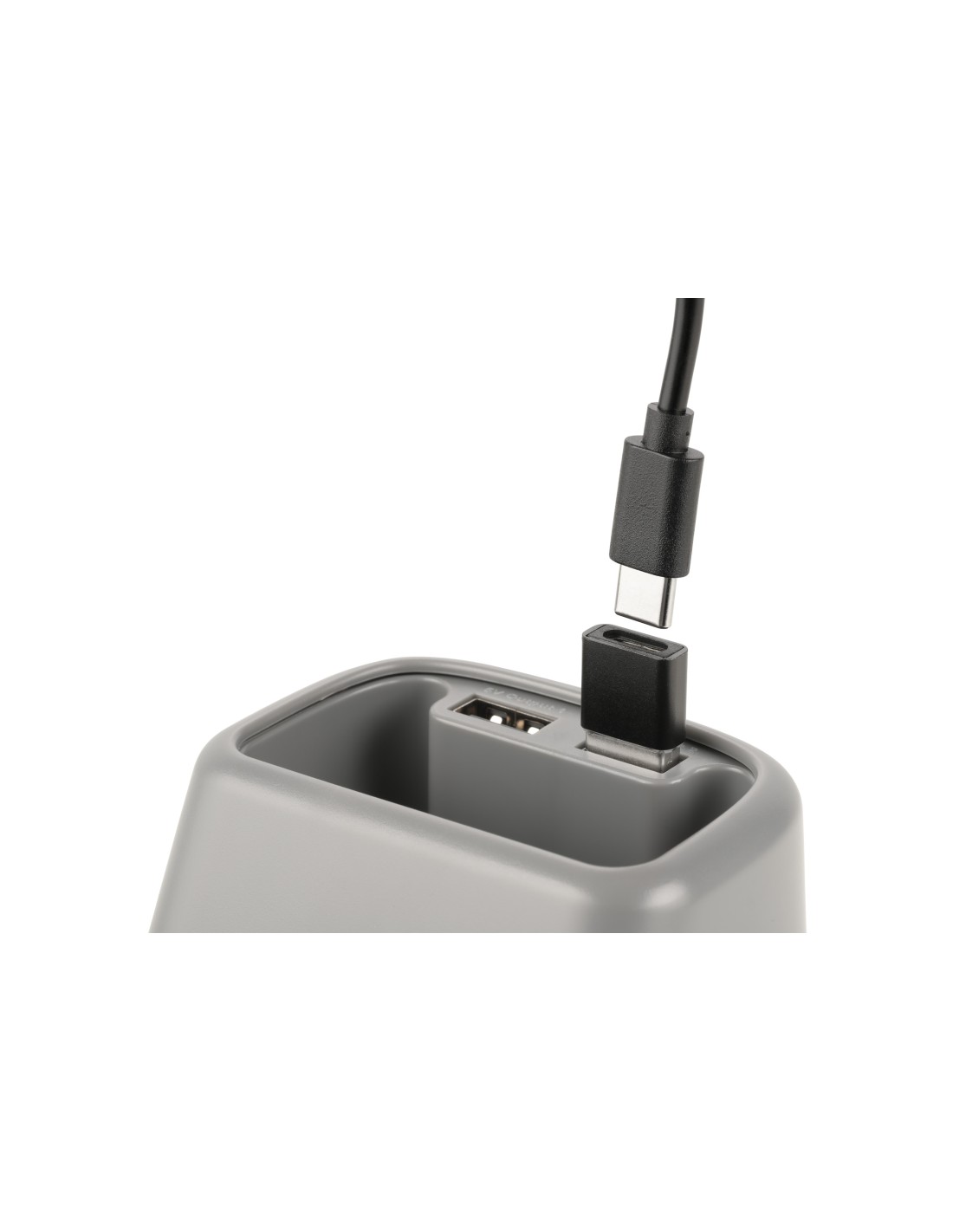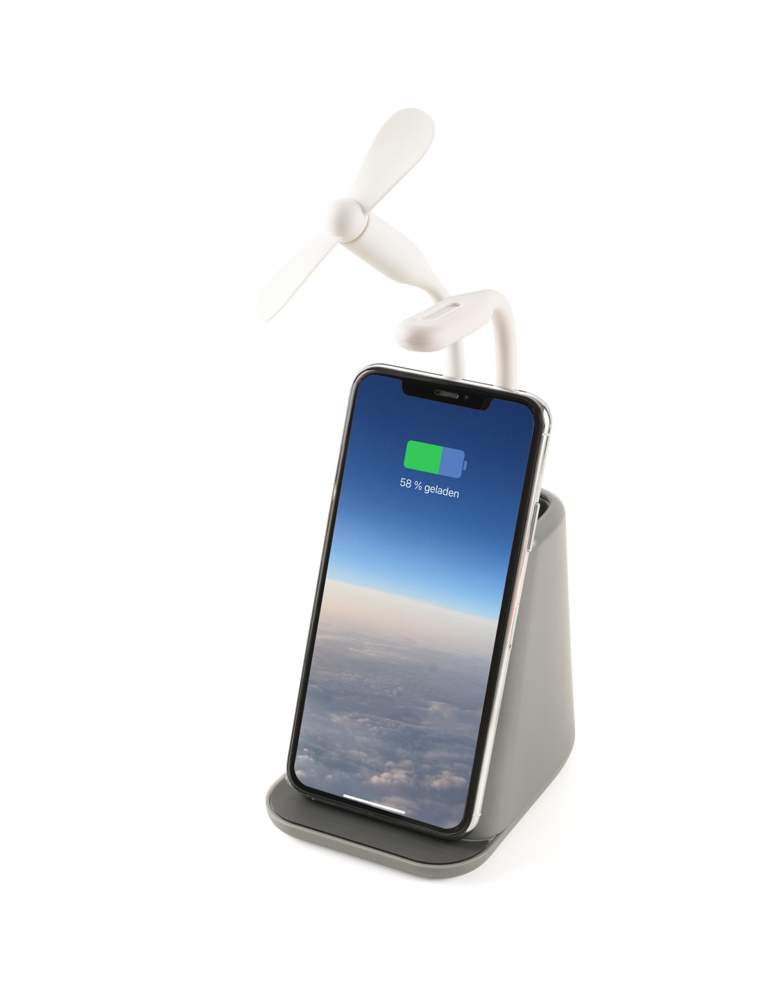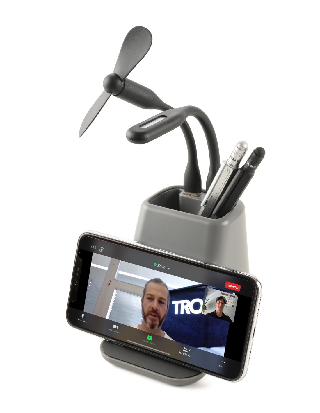 Ladestation und Schreibtisch Organizer: Stiftehalter und Handyhalter, induktives Laden (senkrecht oder waagerecht, 10 Watt), zusätzlich 2 USB-Ladebuchsen (Output: max. 5 Volt - max. 2 Ampere) für weitere Geräte oder Lampe, Mini-Ventilator, etc., inkl. 1 USB-C auf USB Ladekabel + 1 USB-C auf USB Adapter, Aufladewinkel perfekt für gleichzeitiges Laden und Nutzung für Video Calls, Kunststoff, matt, grau