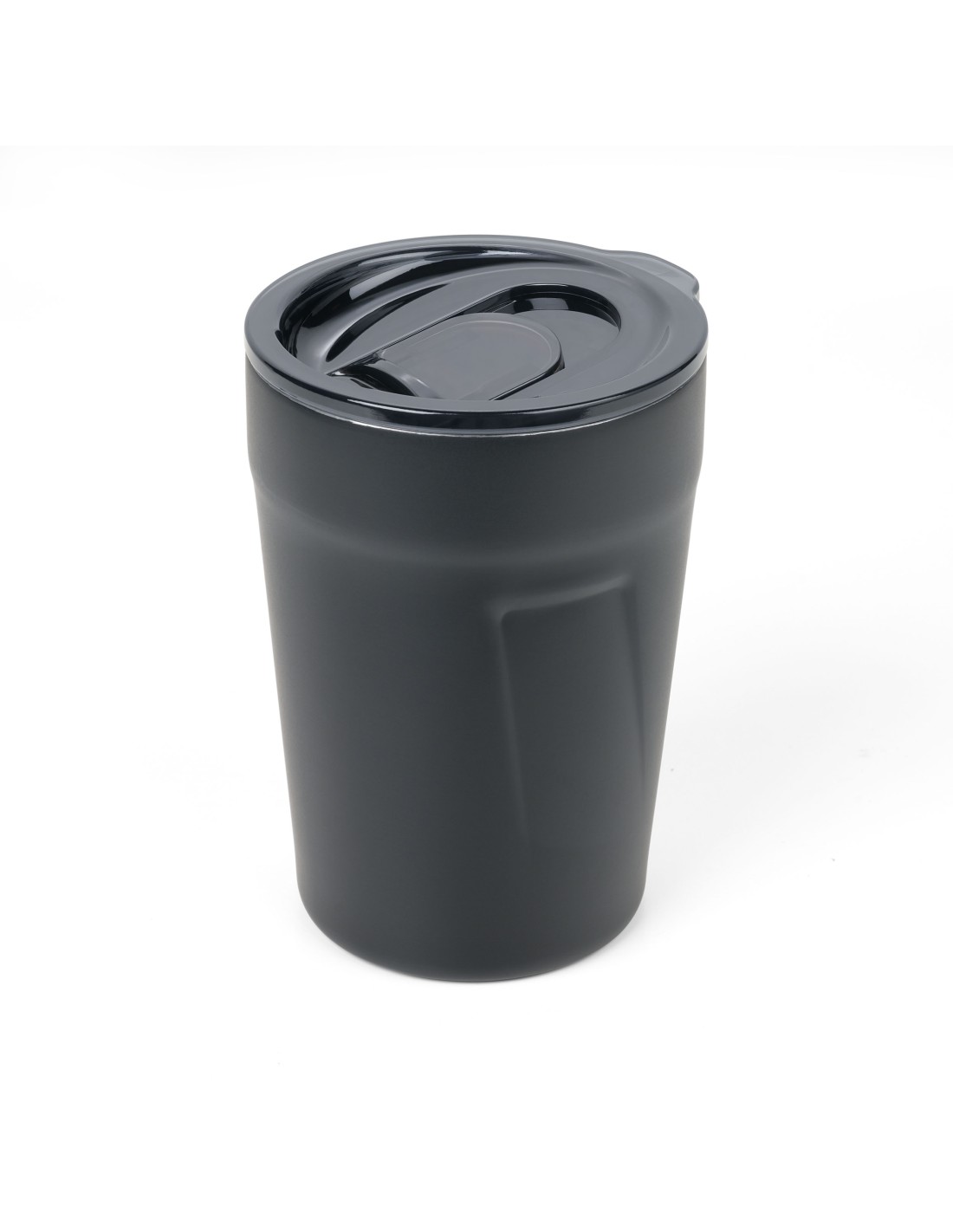 Thermobecher für Cappuccino, Latte Macchiato, Kaffee und andere Heißgetränke, Doppelwand-Isolierung mit Vakuum, Fassungsvermögen: max. 300 ml (ca. 10 fl. oz.), aus 75% recyceltem Edelstahl (RCS), Kunststoffdeckel (BPA-frei) inkl. Verschlussschieber und Gummidichtung, schwappsicher, 304 Edelstahl, , matt, schwarz