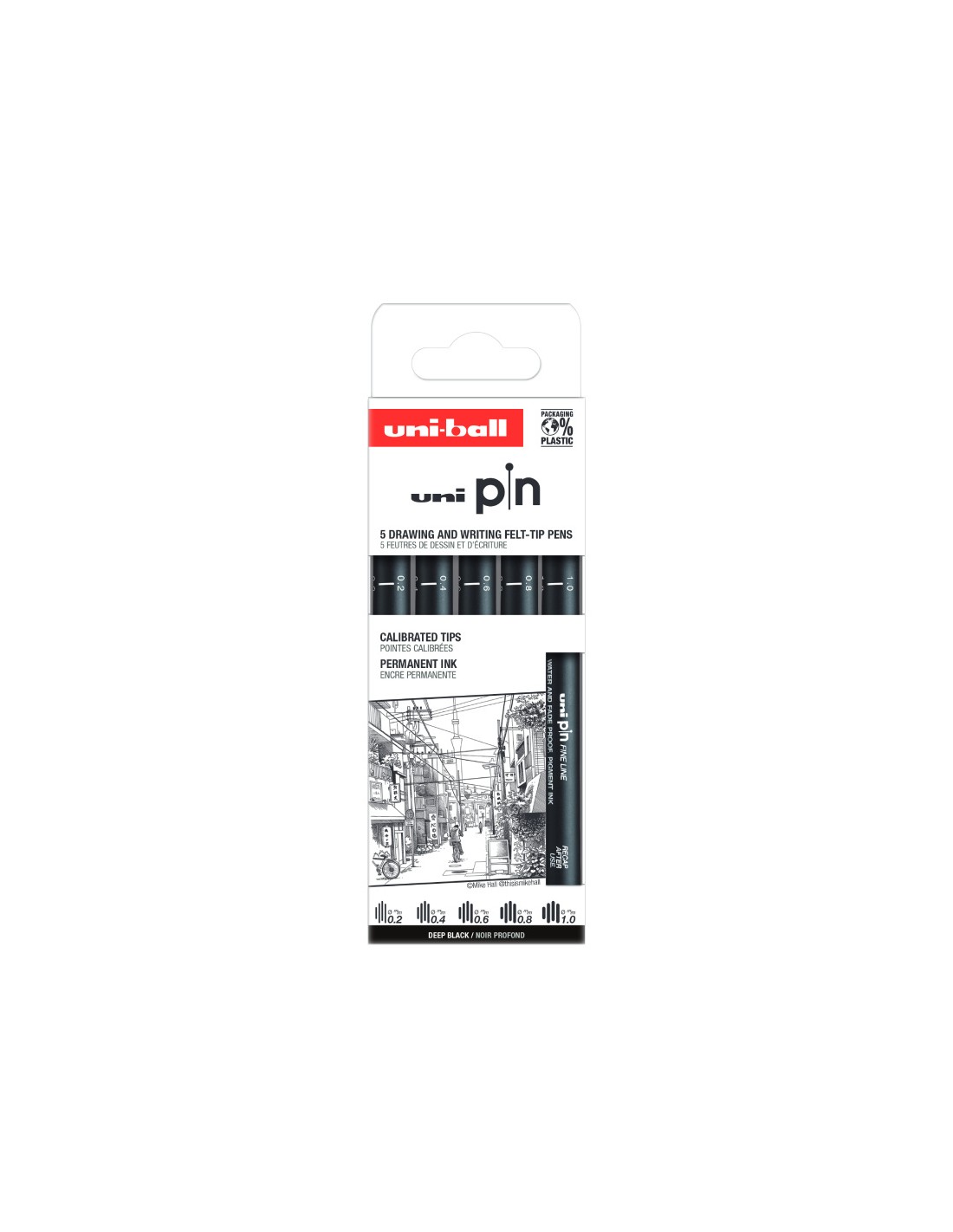 uni PIN Fineliner Classic Street Etui 5 Stk, schwarz, 0.2, 0.4, 0.6, 0.8, 1.0 mm