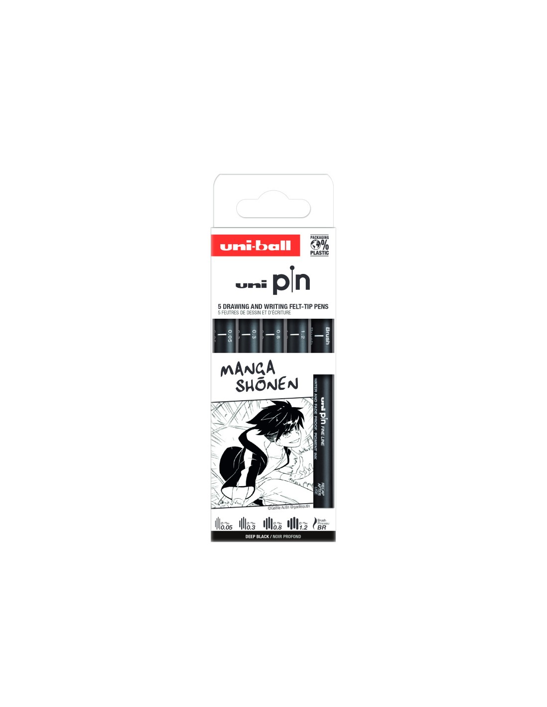 uni PIN Fineliner Manga Shônen Etui 5 Stk, schwarz