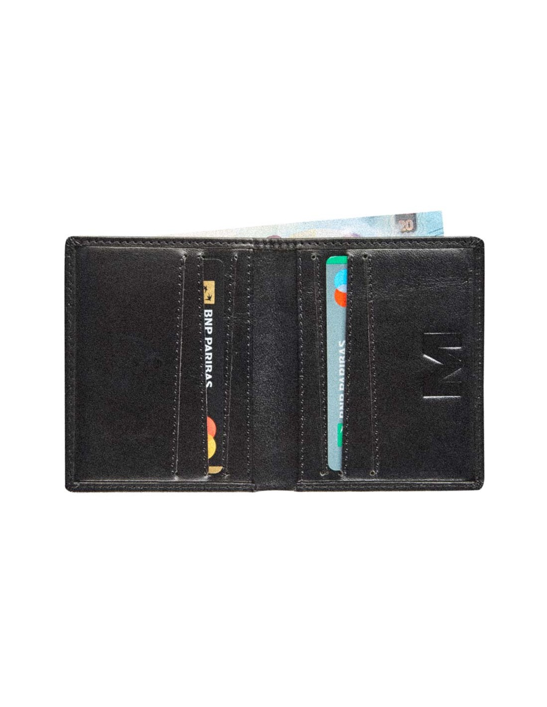 - Vollnarbiges Rindsleder - pflanzlich gegerbtes Leder - RFID-Schutz - 6 Schlitze für Zahlungskarten - 1 Geldscheinfach - 7,5 x 10,2 cm.
