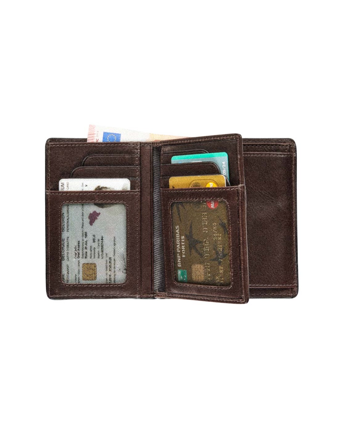 - Vollnarbiges Rindsleder - pflanzlich gegerbtes Leder - RFID-Schutz - 11 Zahlungskartenfächer - 2 Ausweisfächer - 2 Geldscheinfächer - Münzfach - 9,8 x 12,3 cm.