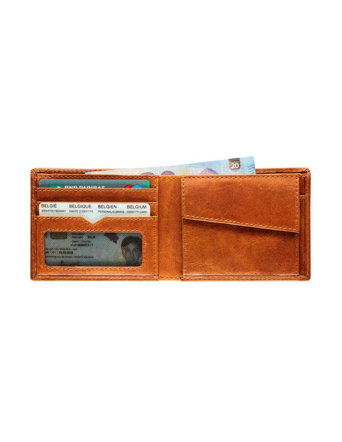 - Vollnarbiges Rindsleder - Pflanzlich gegerbtes Leder - RFID-Schutz - 3 Kartenfächer - 2 Geldscheinfächer - Münzfach - 11 x 8,5 cm.
