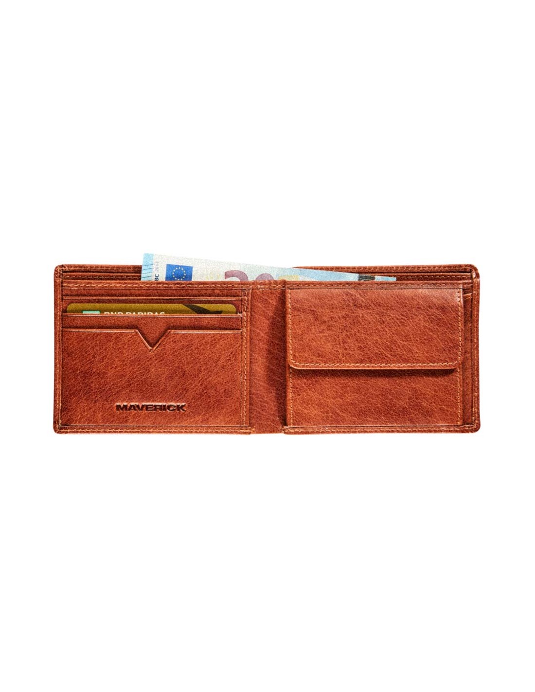 MAVERICK ROUGH GEAR" Kompakte Portemonnaie aus Leder RFID - Cognac.