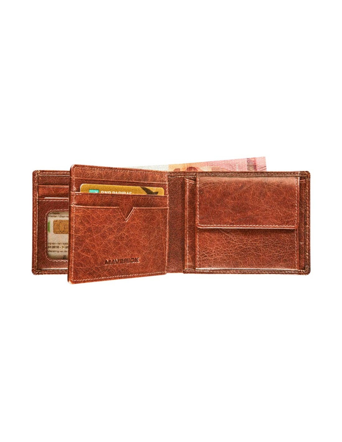 MAVERICK ROUGH GEAR" RFID-Portemonnaie aus Leder mit Münzfach - Cognac.