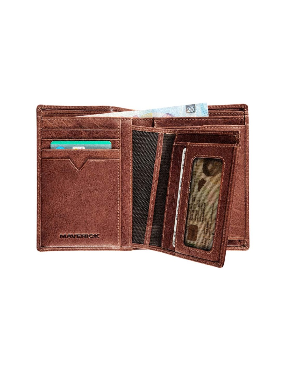 MAVERICK ROUGH GEAR" Geldbörse aus Leder RFID mit herausnehmbarem Kartenhalter - braun.