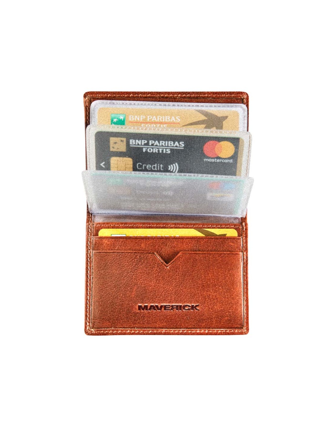 "MAVERICK ROUGH GEAR" Kartenhalter aus Leder RFID für 14 Karten - cognacfarben.