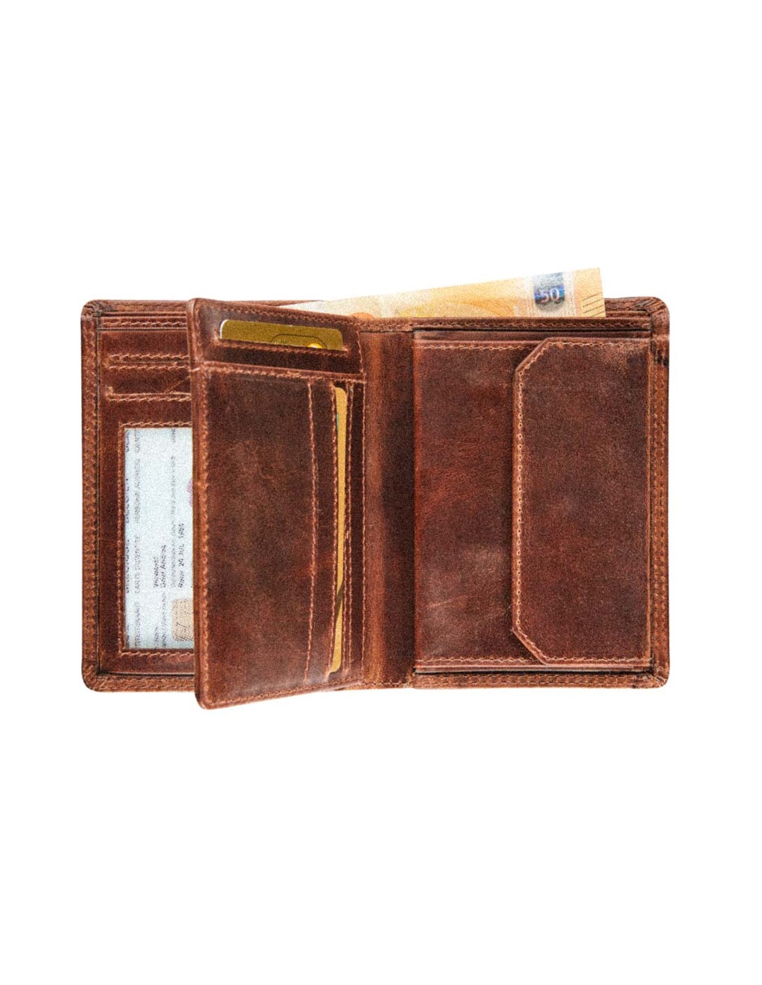 - Vollnarbiges Rindsleder - pflanzlich gegerbtes Leder - RFID-Schutz - 11 Zahlungskartenfächer - 2 Ausweisfächer - 2 Geldscheinfächer - Münzfach - 9,8 x 12,3 cm.
