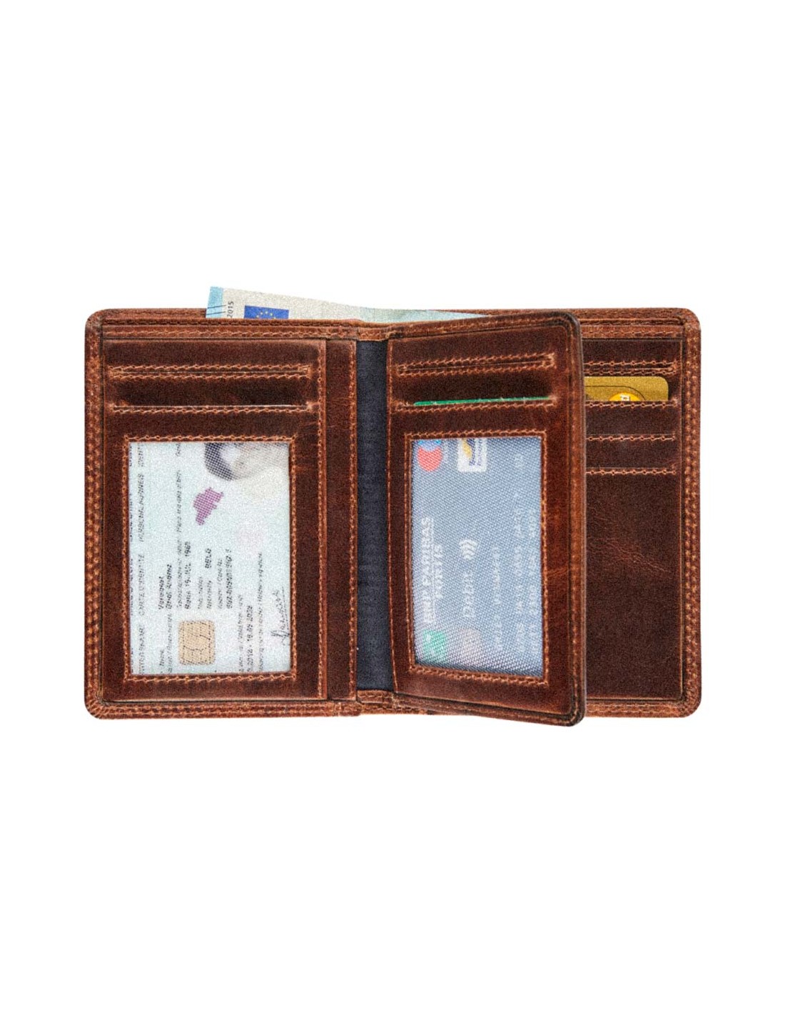 - Vollnarbiges Rindsleder - Pflanzlich gegerbtes Leder - RFID-Schutz - 10 Zahlungskartenfächer - 2 Ausweisfächer - 2 Geldscheinfächer - 9 x 12,5 cm.