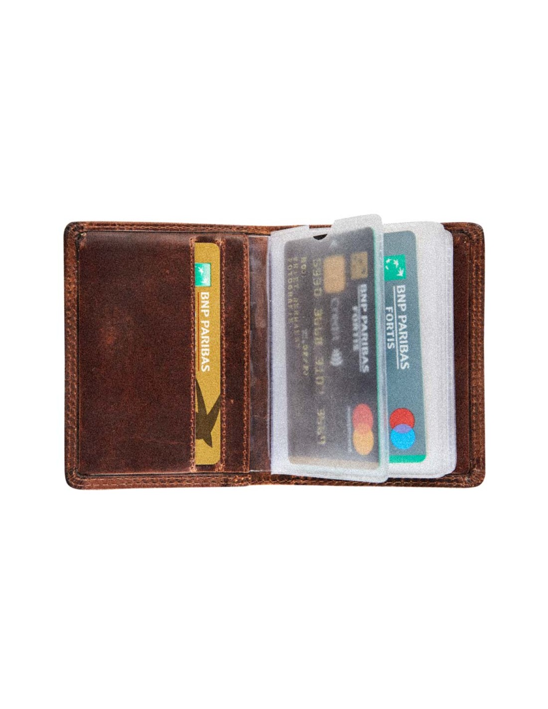 - Vollnarbiges Rindsleder - pflanzlich gegerbtes Leder - RFID-Schutz - 14 Schlitze für Zahlungskarten - 8,2 x 10,2 cm.