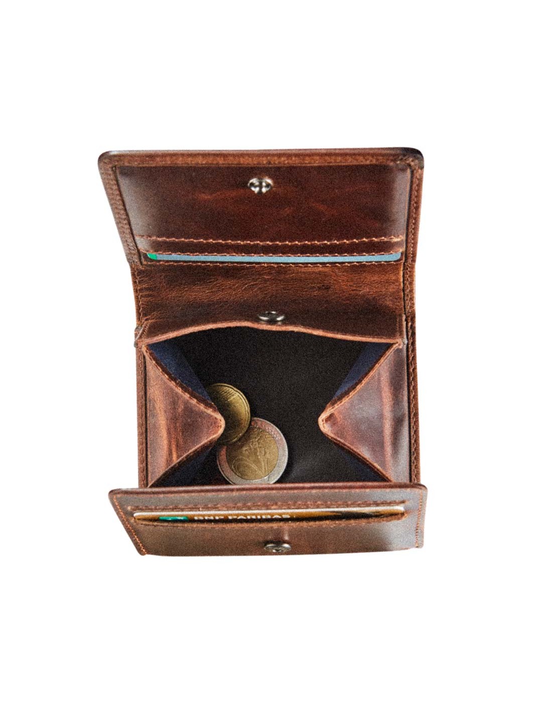 - Vollnarbiges Rindsleder - pflanzlich gegerbtes Leder - RFID-Schutz - 1 Münzfach - 3 Zahlungskarten - Geldscheinfach - 10 x 9 cm.