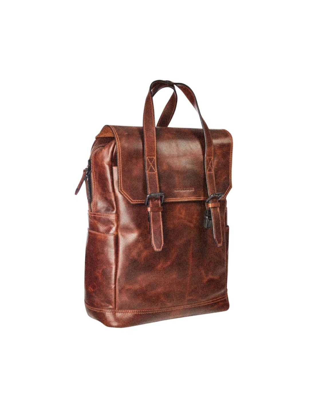 MAVERICK THE ORIGINAL" Lederrucksack mit integrierter Schutzhülle für 15,6" Laptops.