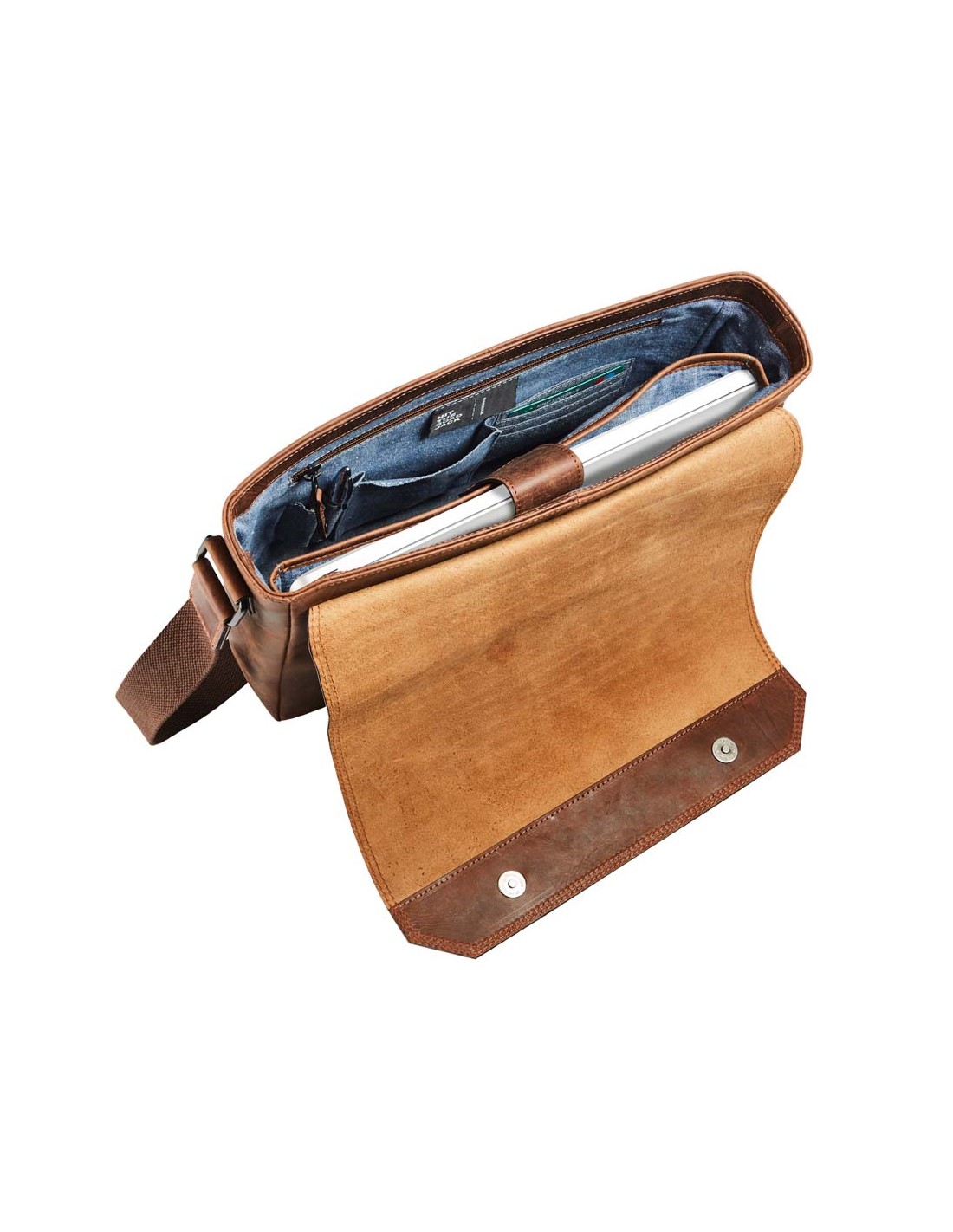 MAVERICK THE ORIGINAL" Leder-Messenger-Tasche mit integrierter Laptop-Hülle für 14".