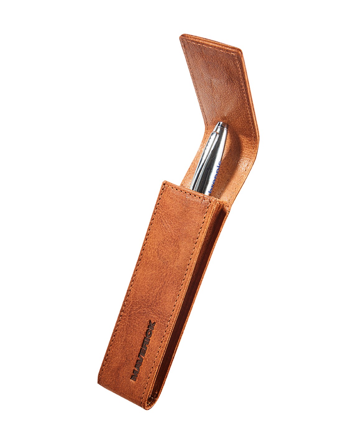 MAVERICK ROUGH GEAR" Lederetui für 1 Feder - Cognac