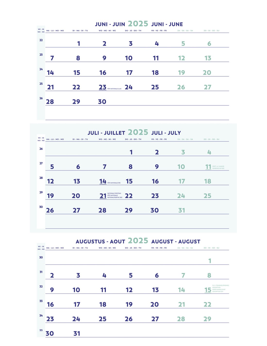 Kalender Brepols 30 x 60 cm
