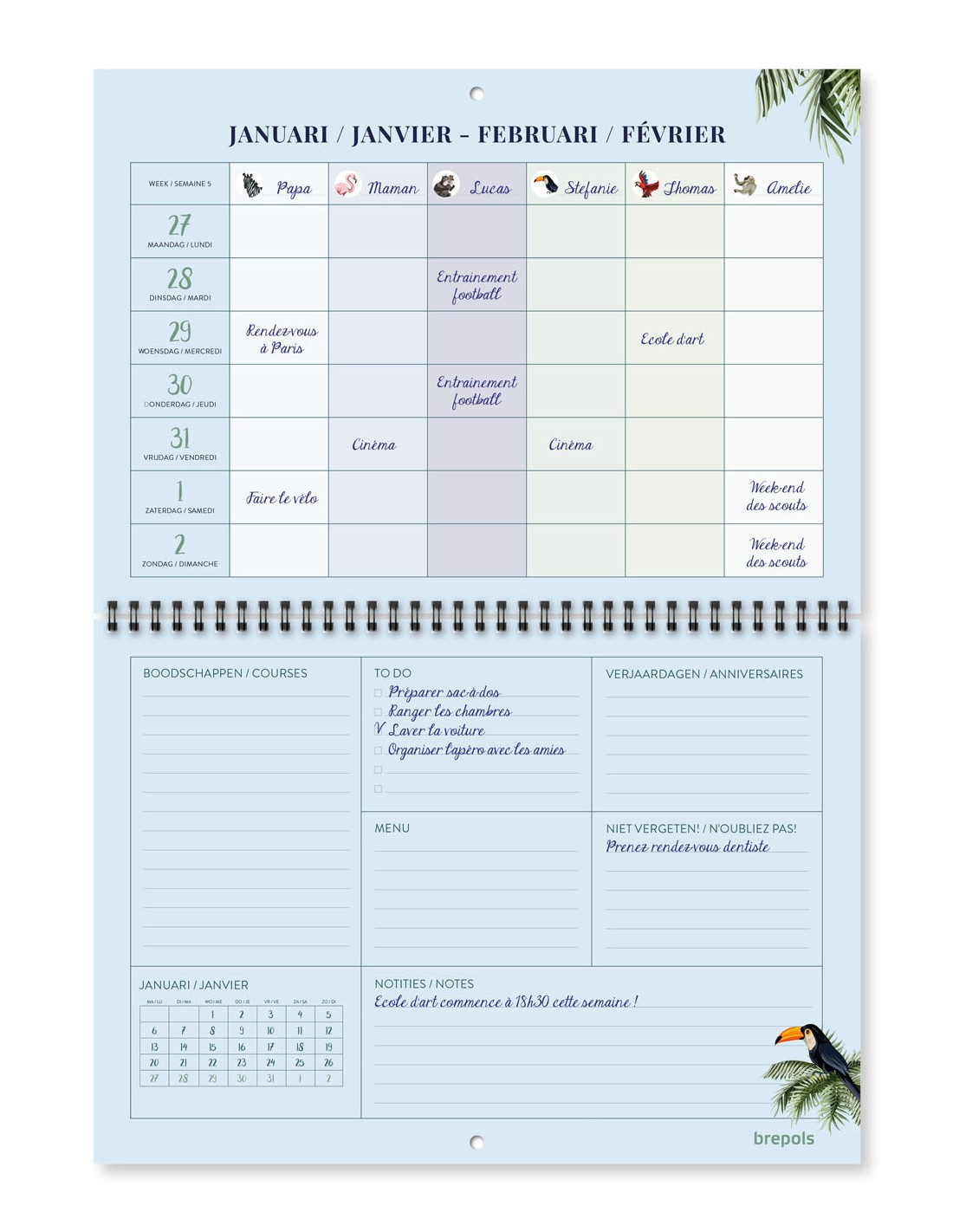 BREPOLS Calendrier de la famille semaine/p "français" wire-O
