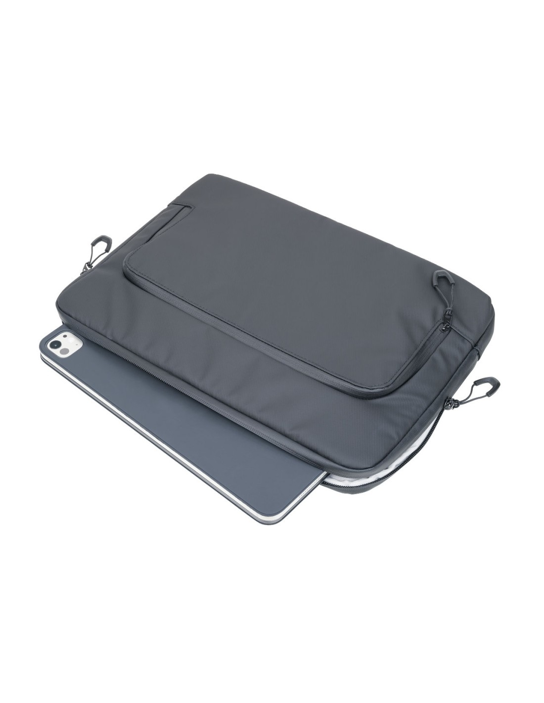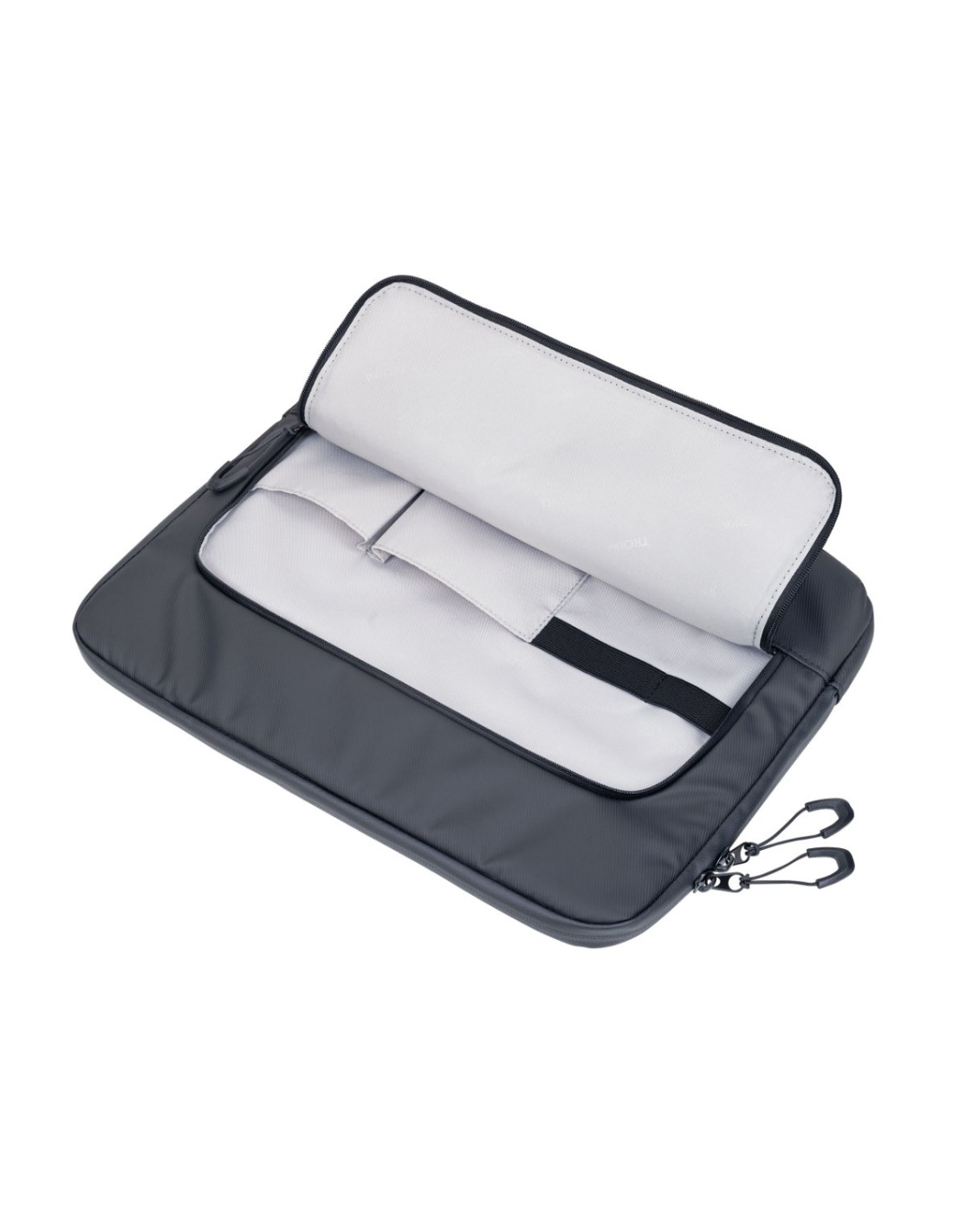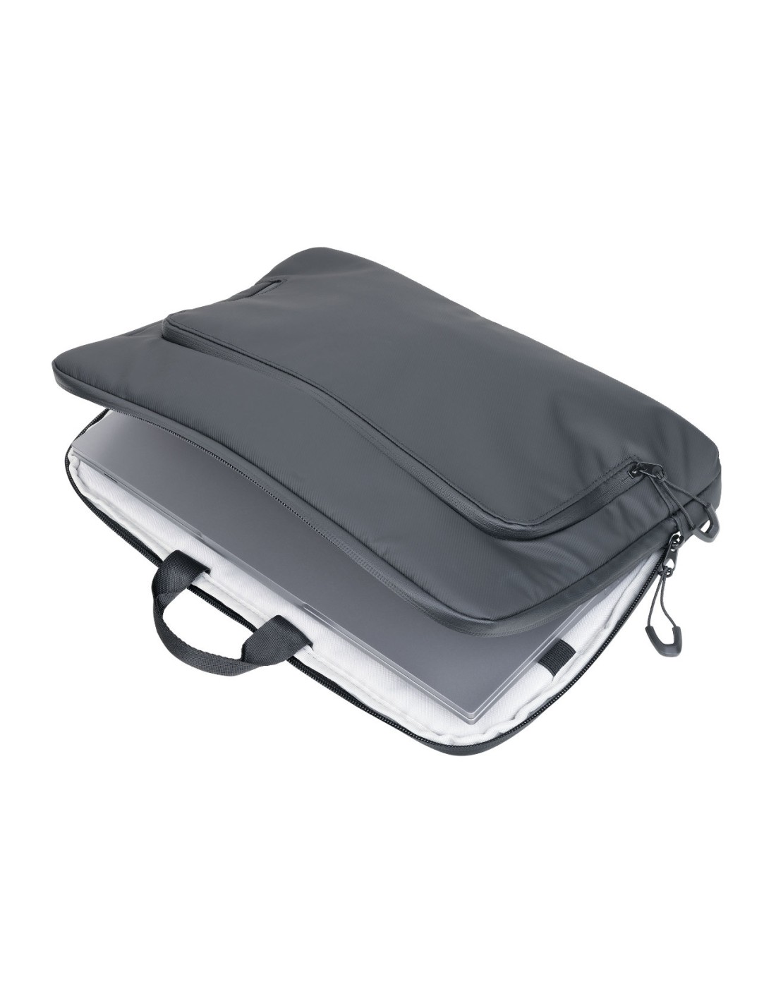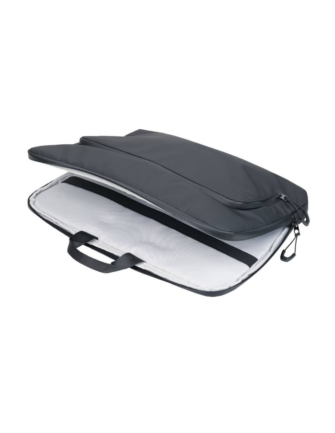 Laptoptasche mit 2 Reißverschlussfächern, 1 großes Fach für Laptop, Tablet, Dokumente (bis zu 14''), mit Tragegriff, separatem Elastikband zur Organisation und zusätzlichem Aufprallschutz durch gepolsterte Ecken, 1 kleines Fach für Zubehör mit 2 Fächern und Elastikbändern, inkl. Geheimfach für mini Tracking-Geräte (z.B. APPLE AirTag®), Schlaufe zur Befestigung am Trolley, wasserabweisende Reißverschlüsse, widerstandsfähiges Material, spritzwassergeschützt (Wasserdichtheitsgrad IPX4), Tarpaulin: 80% Polyester, 20% Polyurethan (PU), Polyester, Polyurethan, Tarpaulin (Plane), schwarz