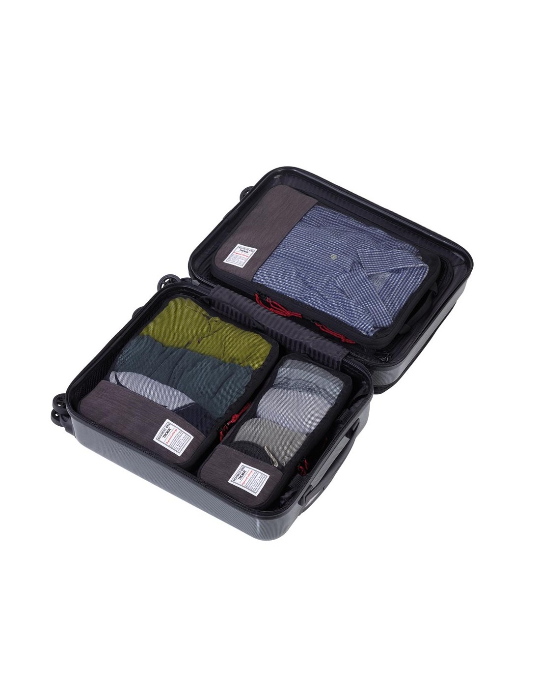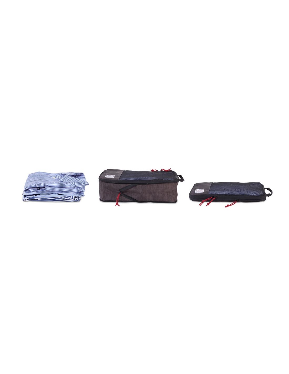 Reise-Kompressionstaschen Set, 3 Packtaschen mit Reißverschluss und zusätzlichem Kompressionsreißverschluss für platzsparendes, geordnetes und knitterfreies Packen von Kleidung in Koffer & Rucksack, 3 Größen: L (Hemden & Hosen), M (Shirts), S (Wäsche & Socken), jeweils mit Netzfenster und Tragegriff, Polyester, anthrazit/schwarz