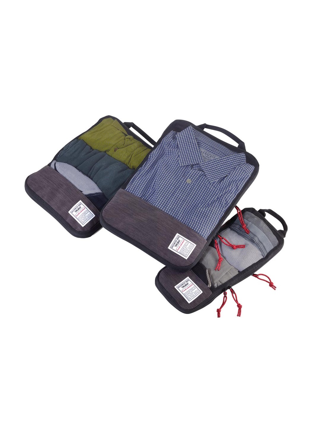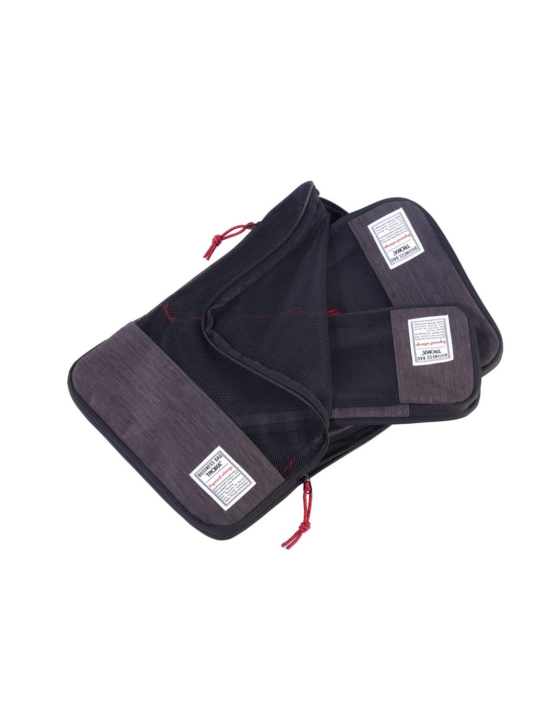 Reise-Kompressionstaschen Set, 3 Packtaschen mit Reißverschluss und zusätzlichem Kompressionsreißverschluss für platzsparendes, geordnetes und knitterfreies Packen von Kleidung in Koffer & Rucksack, 3 Größen: L (Hemden & Hosen), M (Shirts), S (Wäsche & Socken), jeweils mit Netzfenster und Tragegriff, Polyester, anthrazit/schwarz