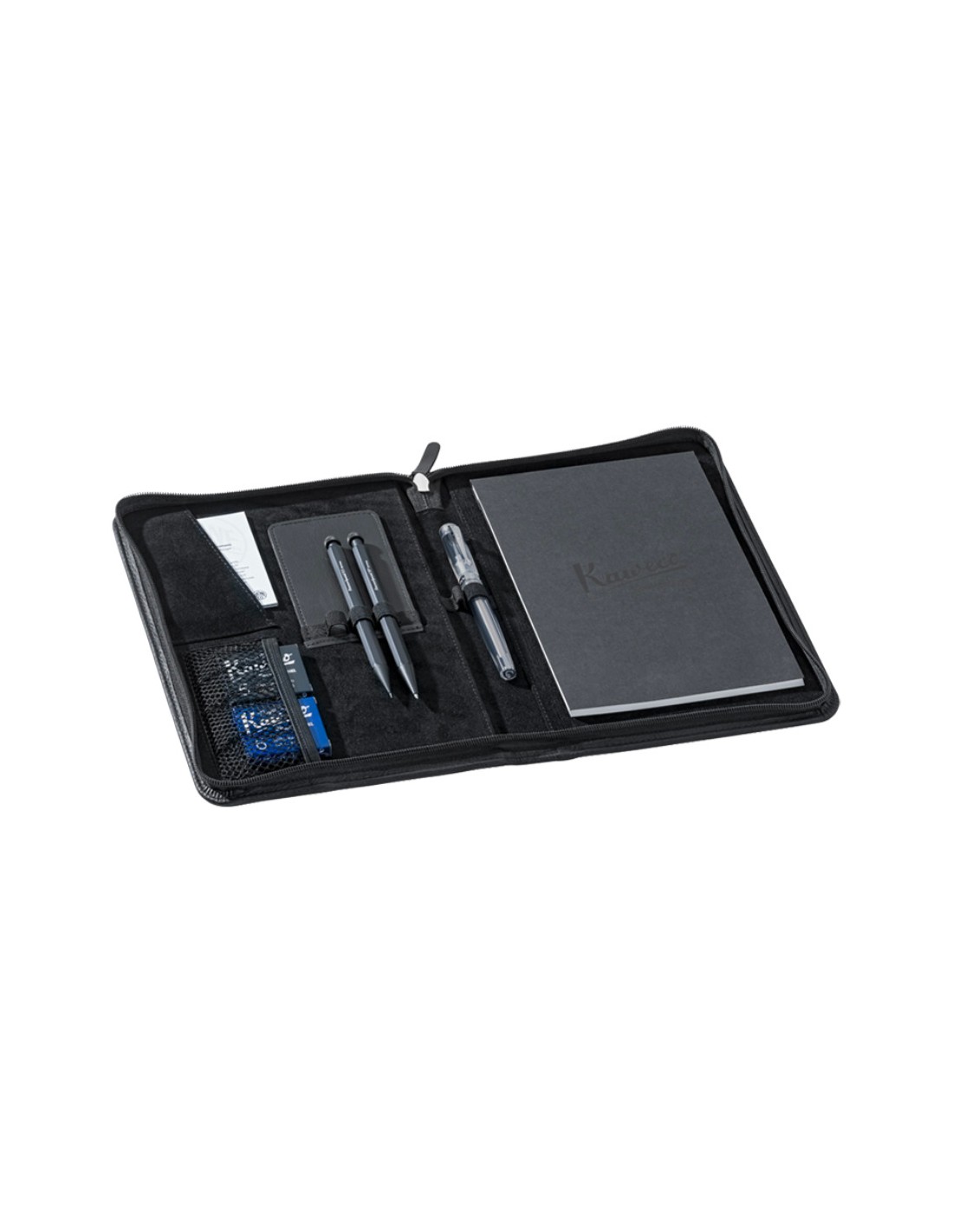 Mit dem stilbewussten Kaweco Organiser haben Sie zu jeder Zeit alles Wichtige dabei. Der Organiser bietet Stauraum für fünf Schreibgeräte, einem DIN A5 Notizbuch und fasst zwei flexible Fächer, für beispielsweise Visitenkarten und Tintenpatronen. Für den flexiblen und platzsparenden Einsatz in Meetings, ist der Organiser mit einer herausnehmbaren Stiftemappe für drei Stifte versehen.