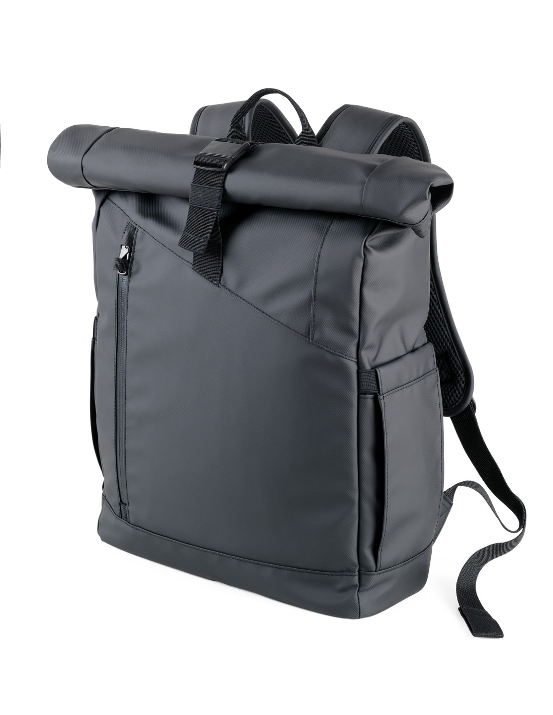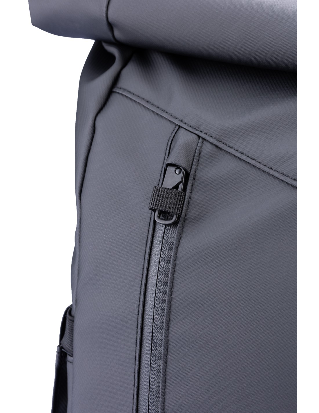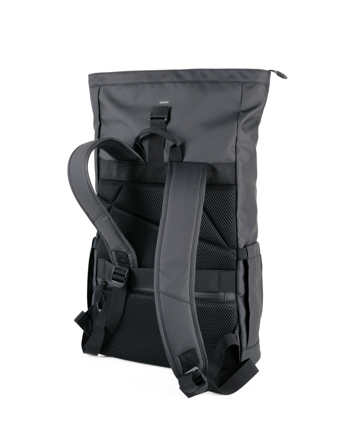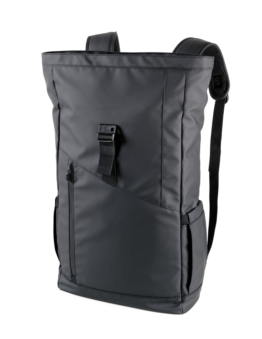 Roll Top Rucksack mit magnetischem Sicherungsverschluss aus Metall, wasserabweisende Reißverschlüsse außen, Hauptfach: 1 Reißverschlussfach inkl. Geheimfach für mini Tracking-Geräte (z.B. APPLE AirTag® Ortungsknopf) + 2 Einschubfächern mit Klettverschluss, Fronttasche mit versteckbarem Reißverschluss-Schieber als Mini-Karabiner (Diebstahlschutz), 2 Seitentaschen, rückseitiges Geheimfach, gepolsterte Schultergurte, Schlaufe zur Befestigung am Trolley, abgesetzter Standboden, Kapazität ca. 17,5 Liter, Tragkraft bis zu 15 kg, widerstandsfähiges Material, spritzwassergeschützt (Wasserdichtheitsgrad IPX4), Tarpaulin: 80% Polyester, 20% Polyurethan (PU), Polyester, Polyurethan, Tarpaulin (Plane), schwarz
