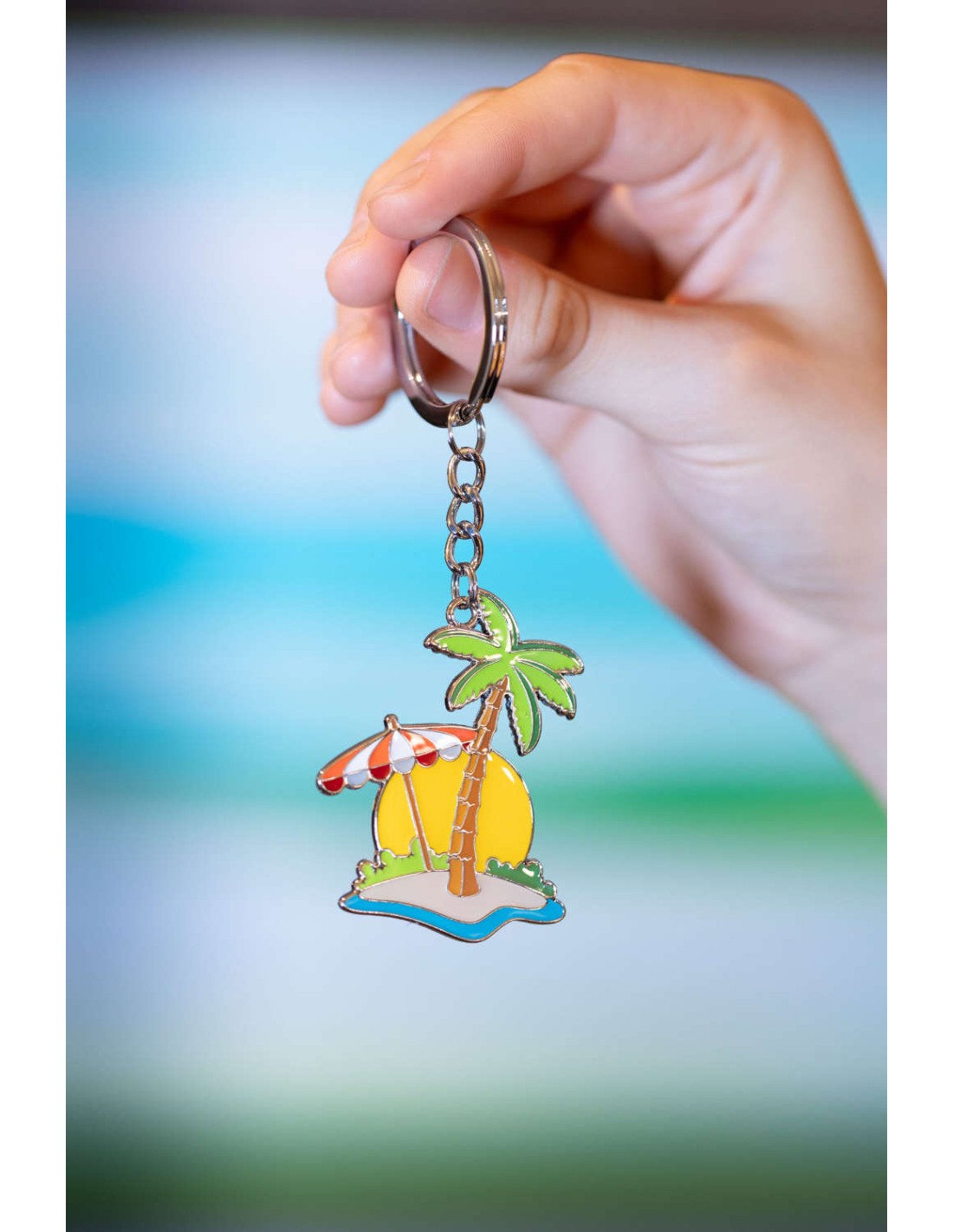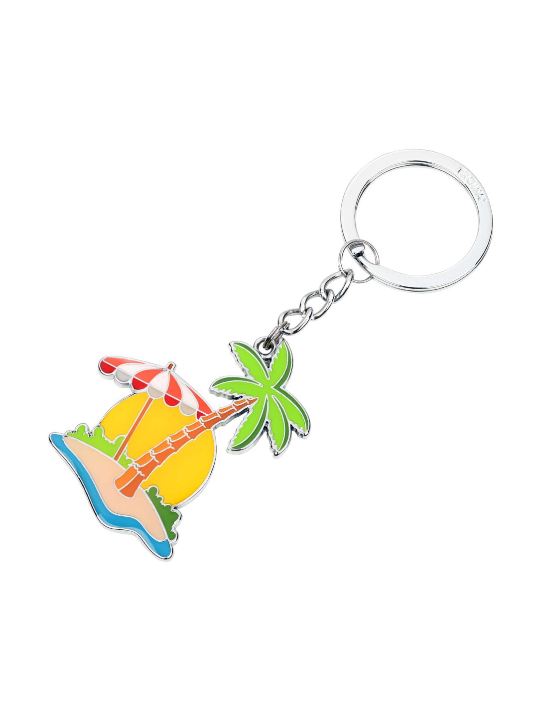Schlüsselanhänger, Urlaub (Insel mit Palme), Emaille, Metallguss, verchromt, glänzend, mehrfarbig
