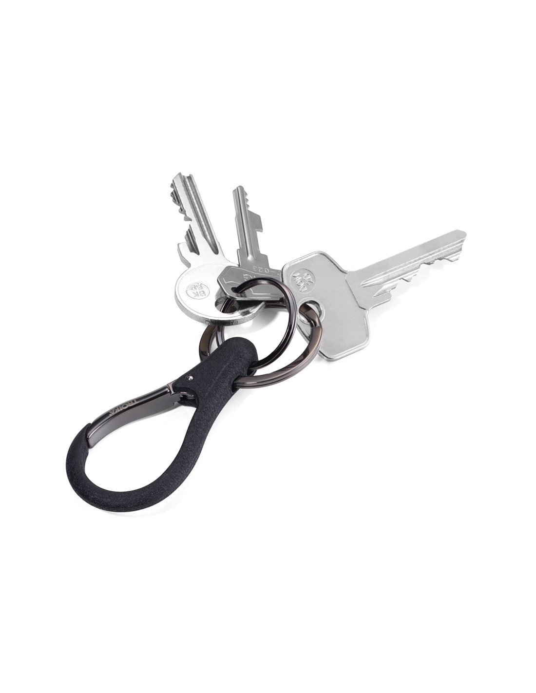 Schlüsselanhänger mit 2 Ringen, Karabiner, Metallguss, lackiert, glänzend, black chrome/schwarz