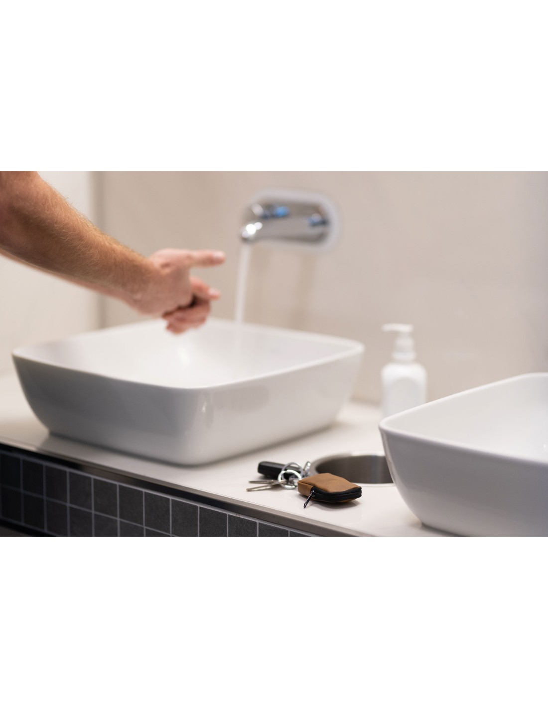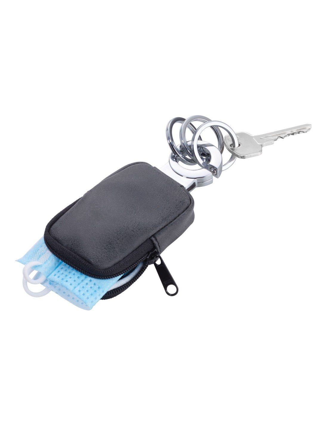 Schlüsselanhänger mit Täschchen für Kleingeld, Maske, etc., antibakteriell beschichtet, tötet 99,9% der Oberflächenbakterien ab, Reißverschluss, 3 Schlüsselringe, praktischer "Klick-Verschluss", Kunstleder, Metall, glänzend, dunkelgrau