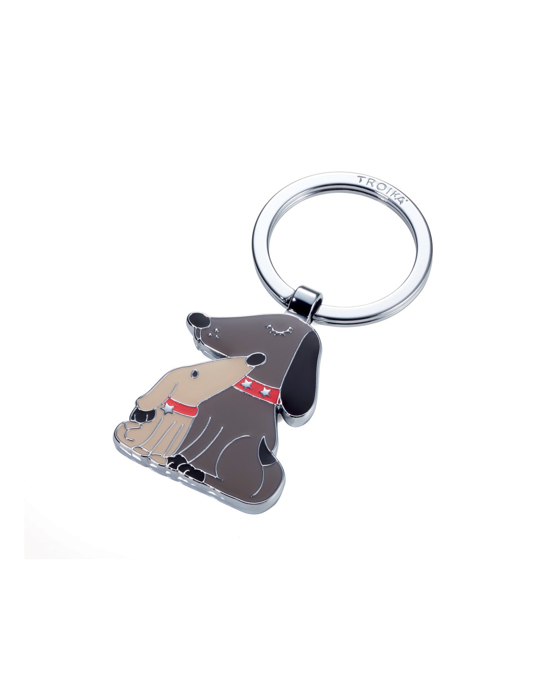 TROIKA DOG & DOGGY Schlüsselanhänger Hund und Welpe, glänzend grau/beige/braun