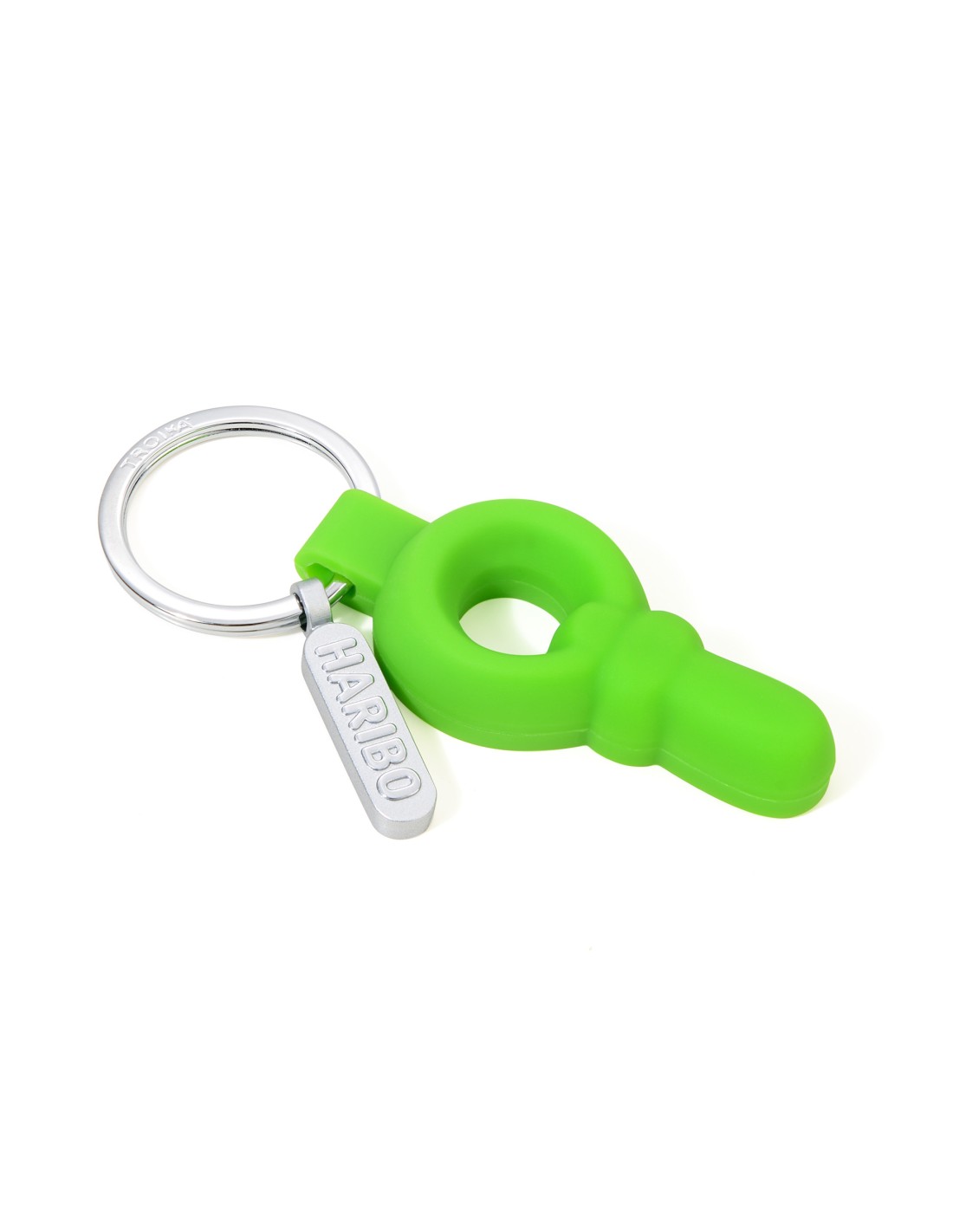 Schlüsselanhänger HARIBO Schnuller, mit kleinem Haribo Logo-Anhänger, Metallguss, PVC, matt, grün