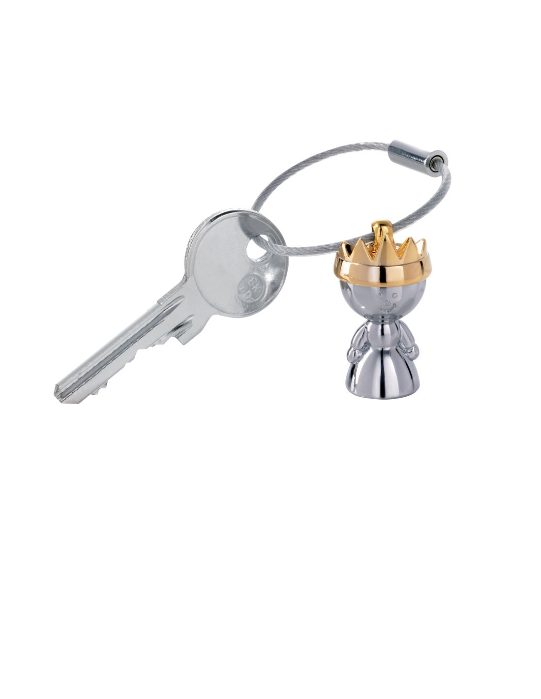 Schlüsselanhänger mit goldener Krone, Königin, Metallguss, verchromt, glänzend, goldfarben/silberfarben