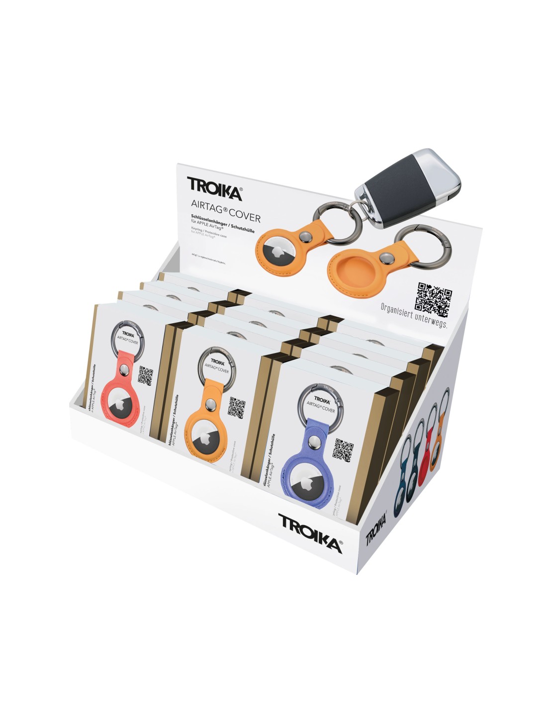 Thekendisplay inkl. 12 x AIRTAG COVER-Schlüsselanhänger, vorsortiert (je 2 x KR21-20/BK, KR21-20/DB, KR21-20/RD, KR21-20/YE, KR21-20/PU, KR21-20/OR), zur Selbstbedienung, Pappe, bedruckt, matt, mehrfarbig
