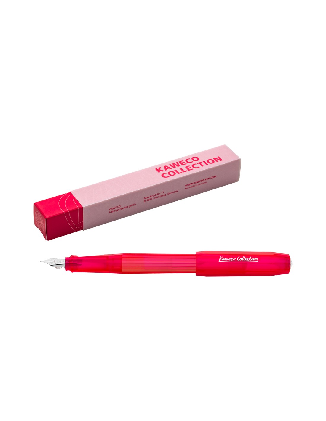 Passend zur Stiftfarbe ist der Kaweco Collection Perkeo Infrared standardmässig mit einer rubinroten Tintenpatrone ausgestattet. Durch das transluzente Gehäuse bleibt die verbliebene Tintenmenge immer im Blick. Sollte die Tintenpatrone doch mal aufgebraucht sein, ist im Schaft ausreichend Platz für eine Ersatzpatrone und der Stift im Handumdrehen wieder einsatzbereit. Durch die optimale Schaftlänge kann der Füllhalter zudem mit einem großen Kaweco Standardkonverter bestückt werden.