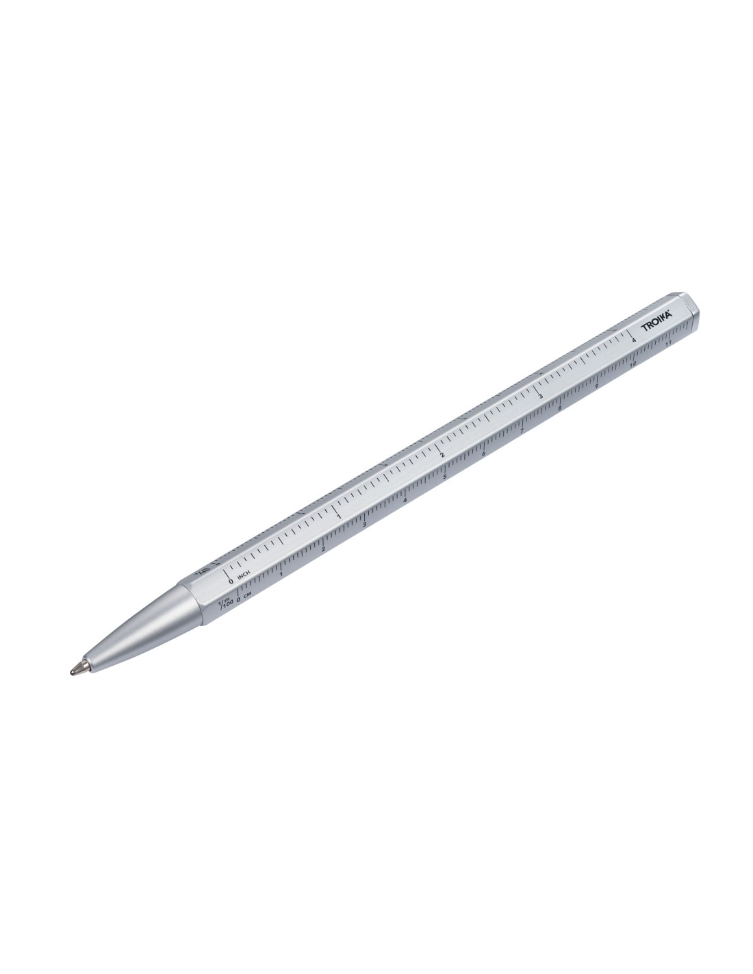 Multitasking-Kugelschreiber mit schwarzer D1 Mine, Zentimeter-/Zoll-Lineal, 1:20/1:50 Skala, einfacher Minenwechsel, Aluminium, , Metall, , matt, silberfarben