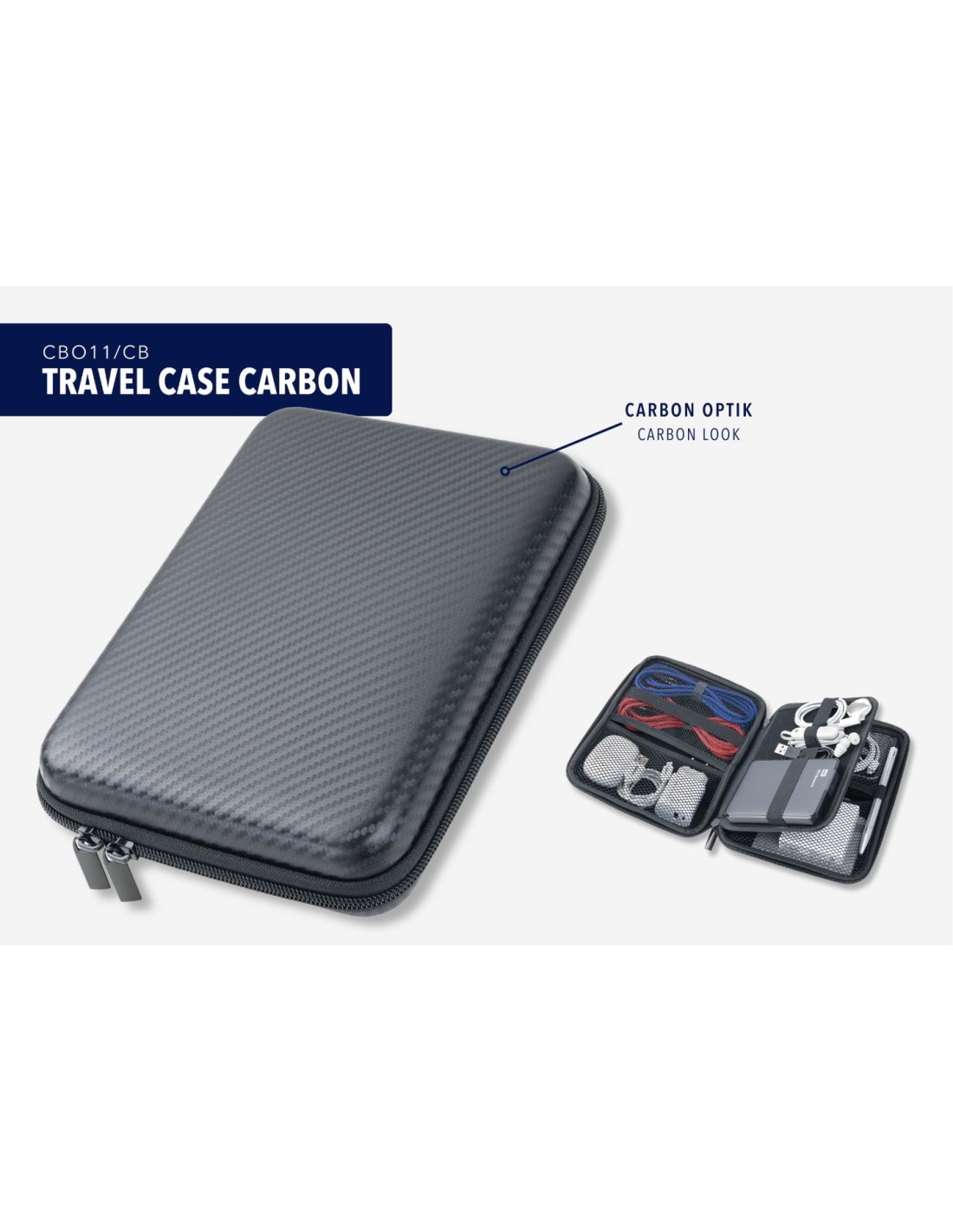 Étui de rangement avec fermeture éclair, 3 compartiments intérieurs, 6 boucles élastiques, séparateur (intérieur), similicuir, velours, aspect carbone
