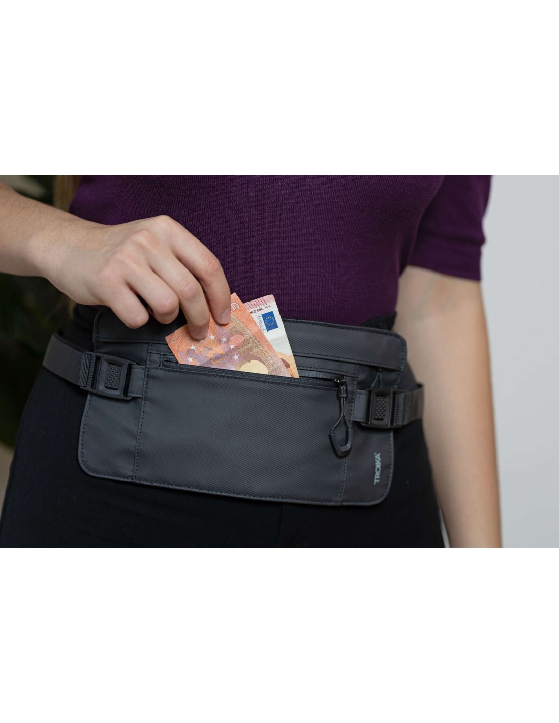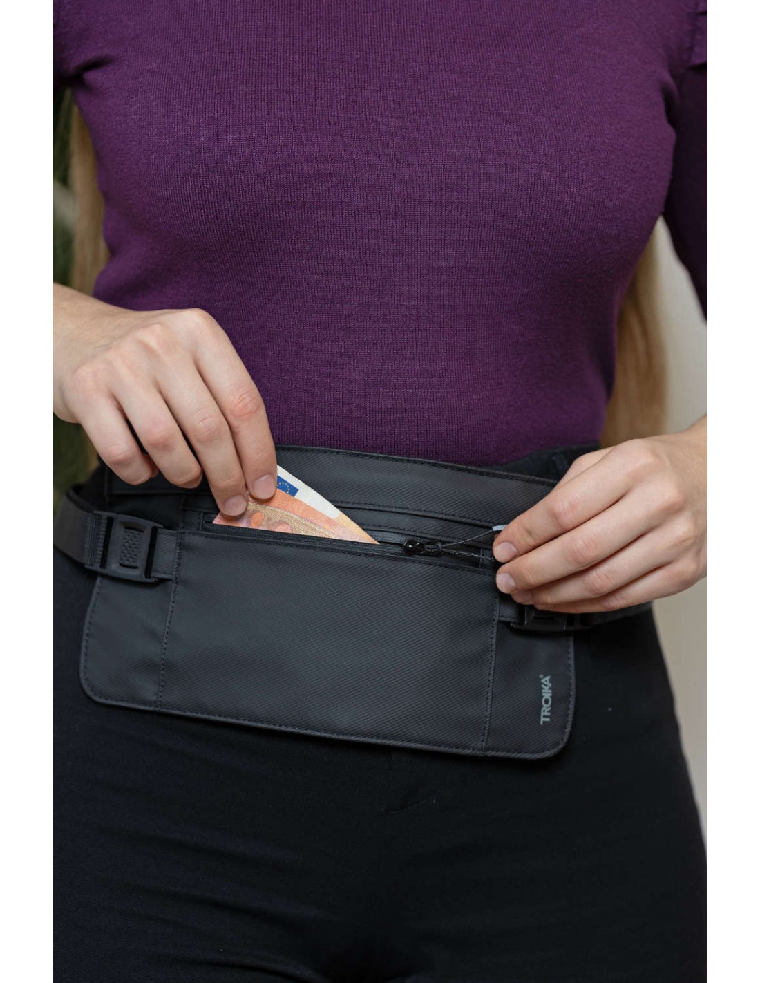 Sac banane avec 2 compartiments zippés, 1 compartiment avec protection contre la lecture (pour puces RFID), convient pour les billets, le passeport, la carte d'identité, le permis de conduire ou les cartes d'embarquement, fermetures éclair hydrofuges, protégées contre les éclaboussures (degré d'étanchéité IPX4), tarpaulin : 80% polyester, 20% polyuréthane (PU), polyester, polyuréthane, tarpaulin (bâche en PP), noire