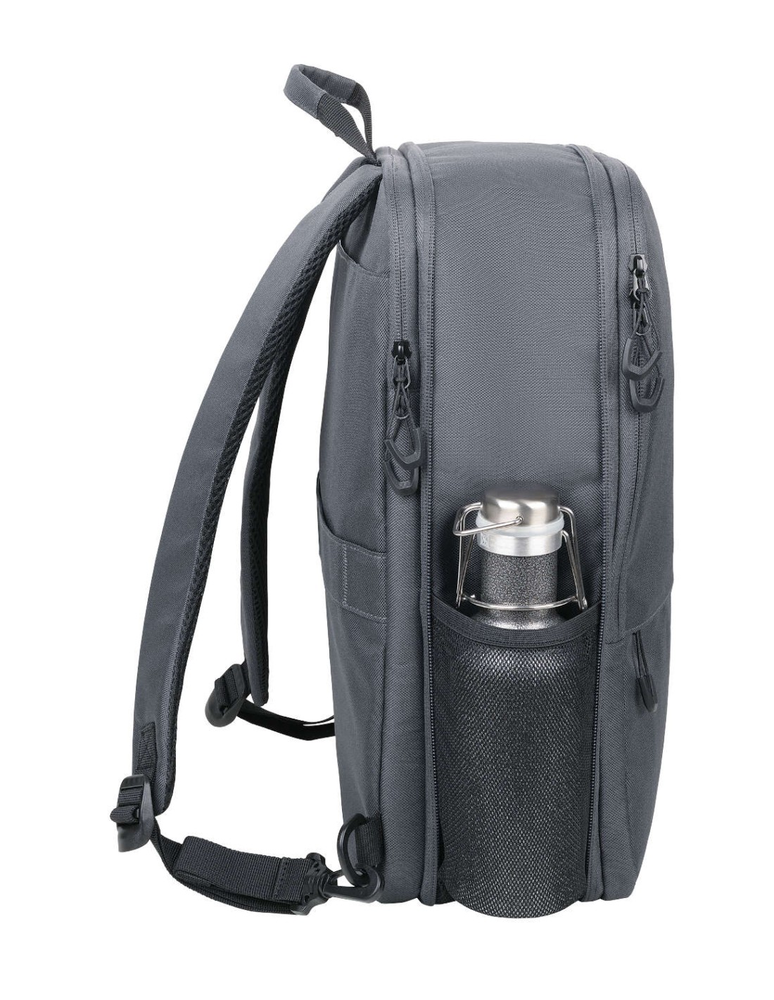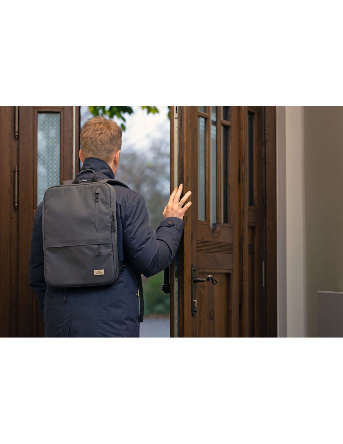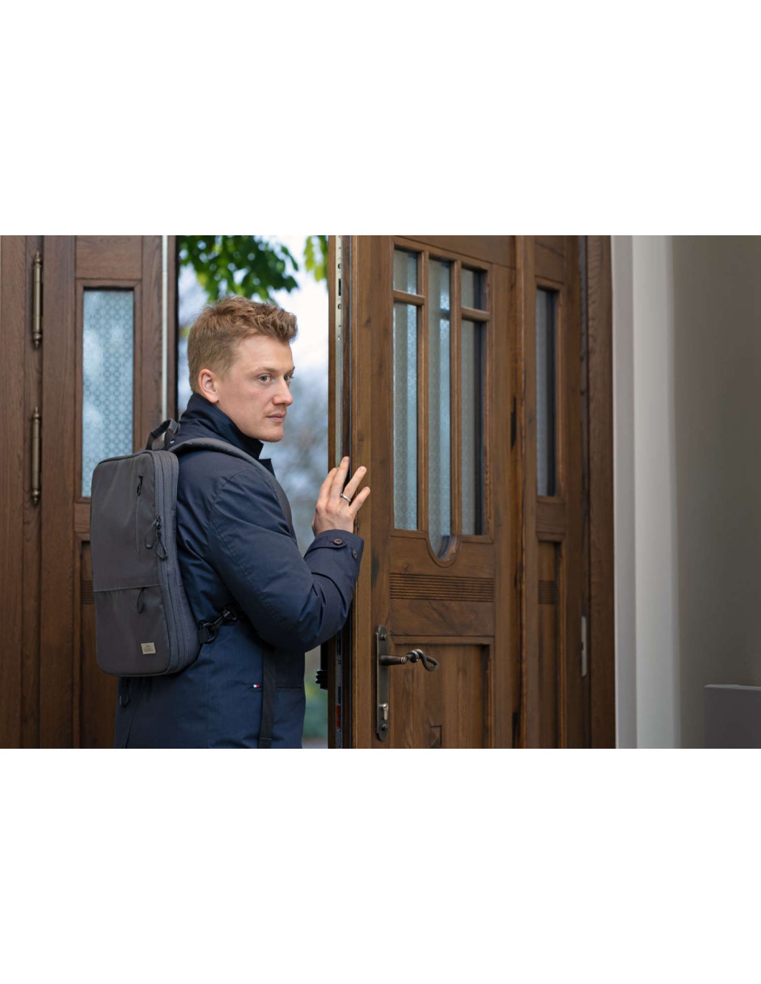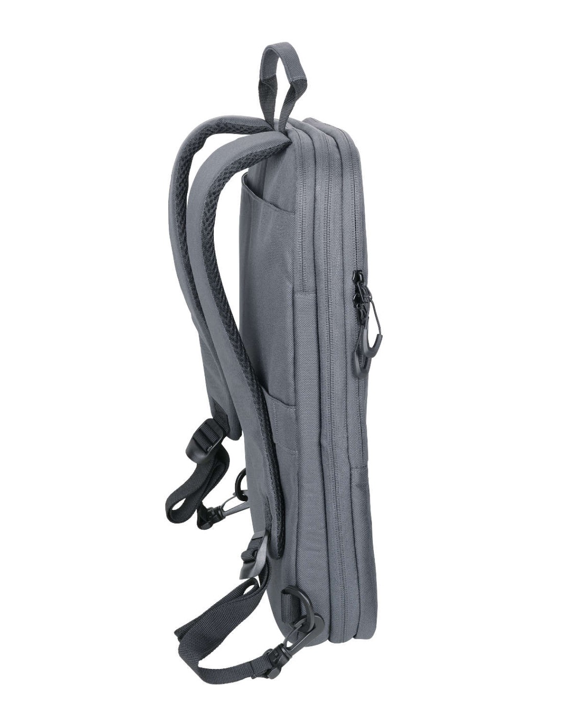 Sac à dos pour ordinateur portable en plastique marin recyclé, extensible grâce à une fermeture éclair supplémentaire, avec 2 grands compartiments (compartiment rembourré pour ordinateur portable et compartiment principal) avec fermeture éclair à double sens, pour ordinateur portable (jusqu'à 16''), plusieurs poches intérieures, 2 compartiments frontaux + 2 poches en filet expansé pour bouteille et parapluie, fond renforcé, boucle pour la fixation au trolley, poignée de transport, sangles de sac à dos cachées, Capacité extensible d'env. 6 litres à env. 14 litres, 100% rPET, plastique marin recyclé, gris foncé