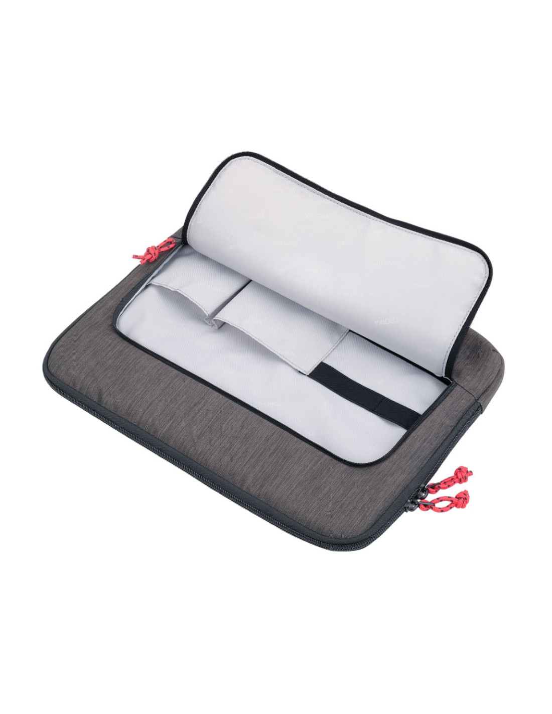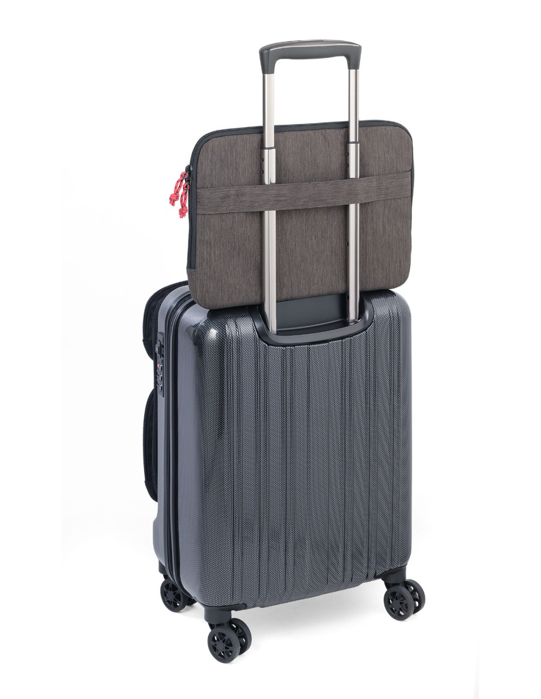 Sacoche pour ordinateur portable avec 2 compartiments zippés, 1 grand compartiment pour ordinateur portable, tablette, documents (jusqu'à 14''), avec poignée de transport, bande élastique séparée pour l'organisation et protection supplémentaire contre les chocs grâce aux coins rembourrés, 1 petite poche pour accessoires avec 2 compartiments et des élastiques, y compris compartiment secret pour mini appareils de suivi (par ex. APPLE AirTag®), boucle pour la fixation au trolley, 100% polyester, polyester, anthracite/noire