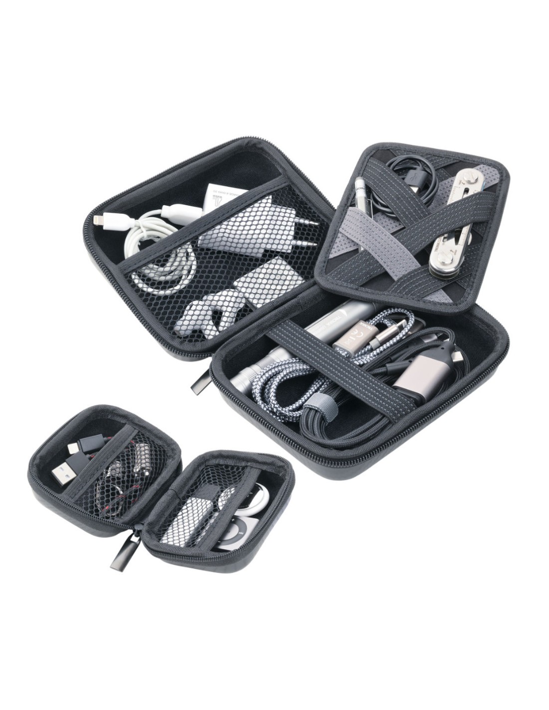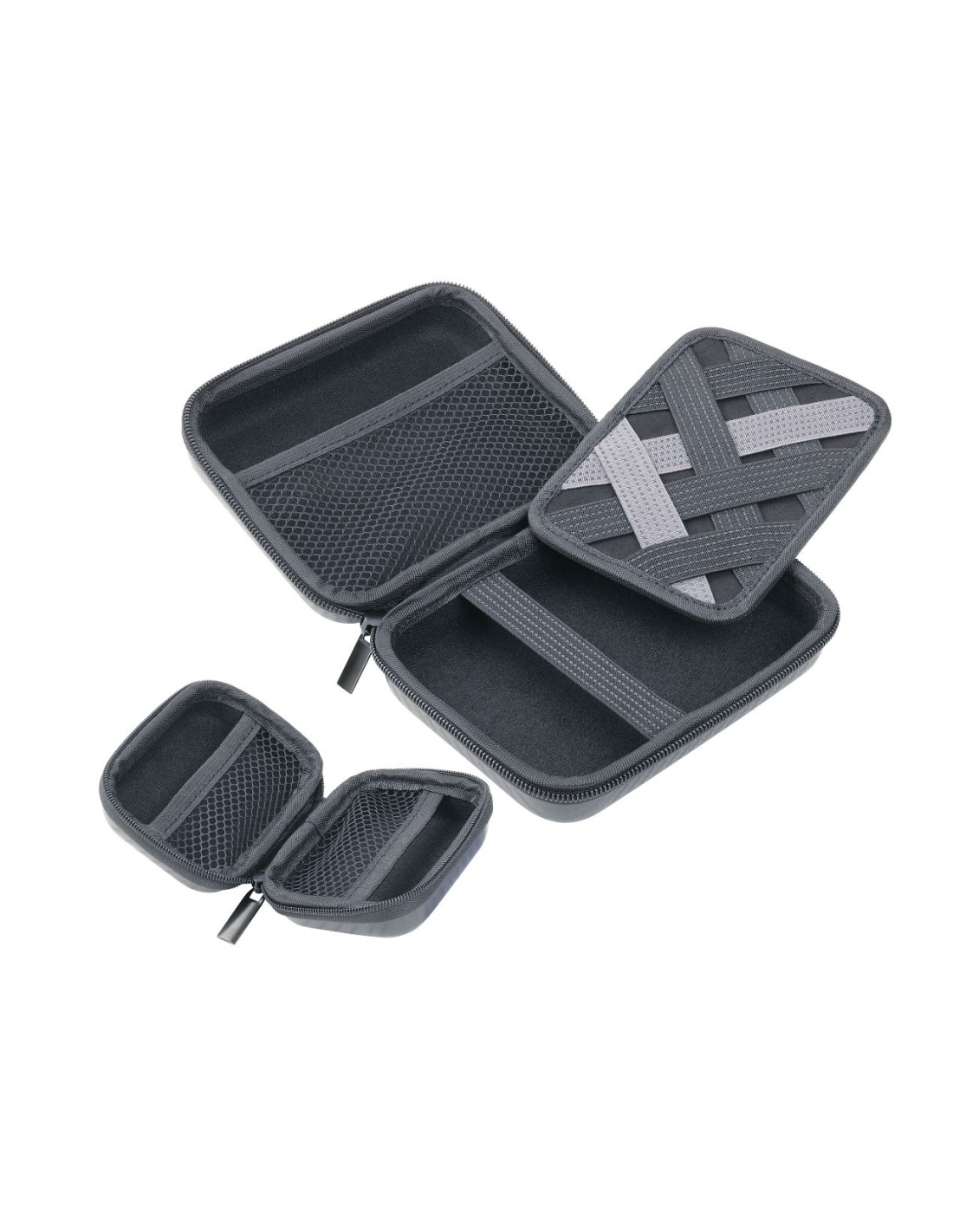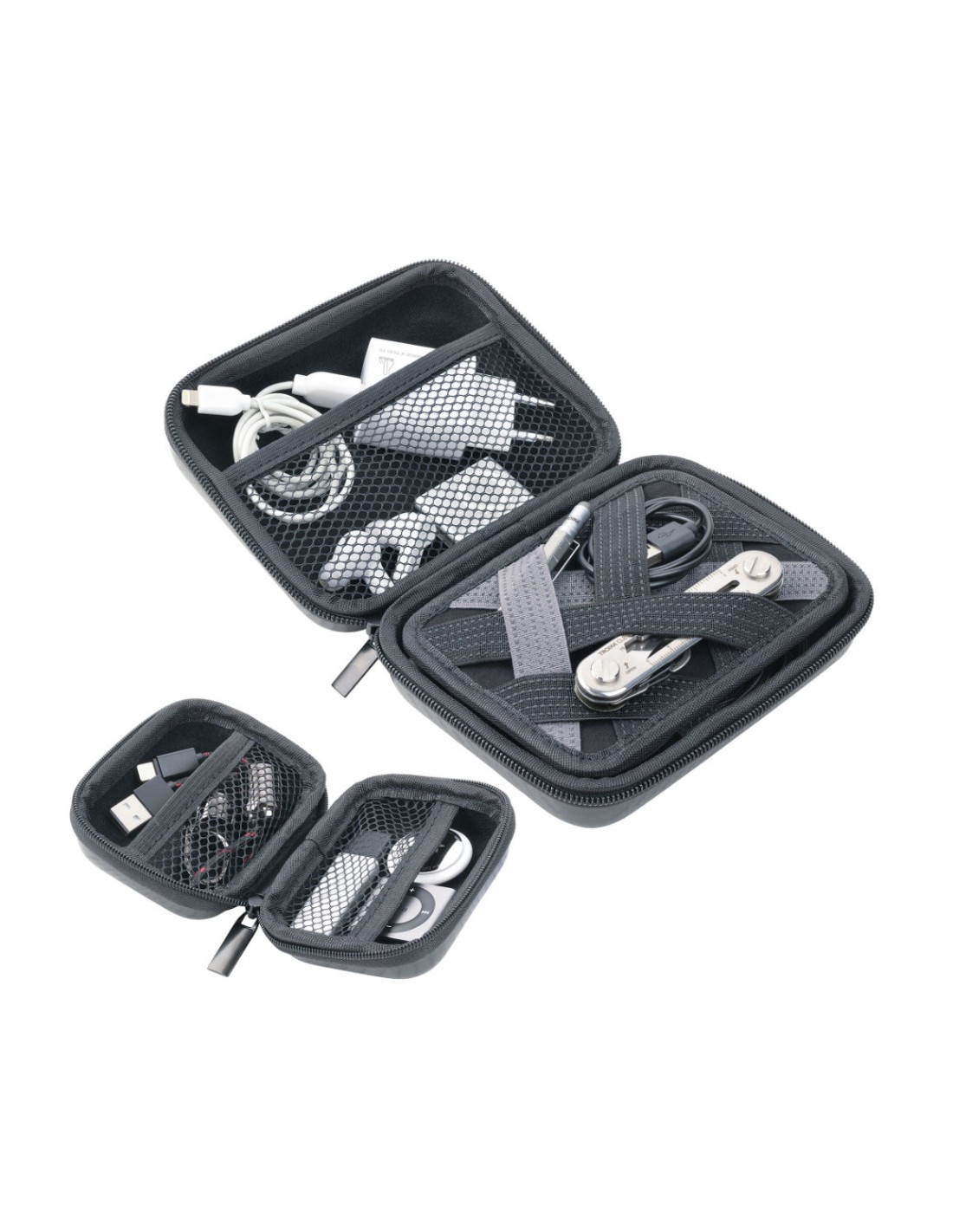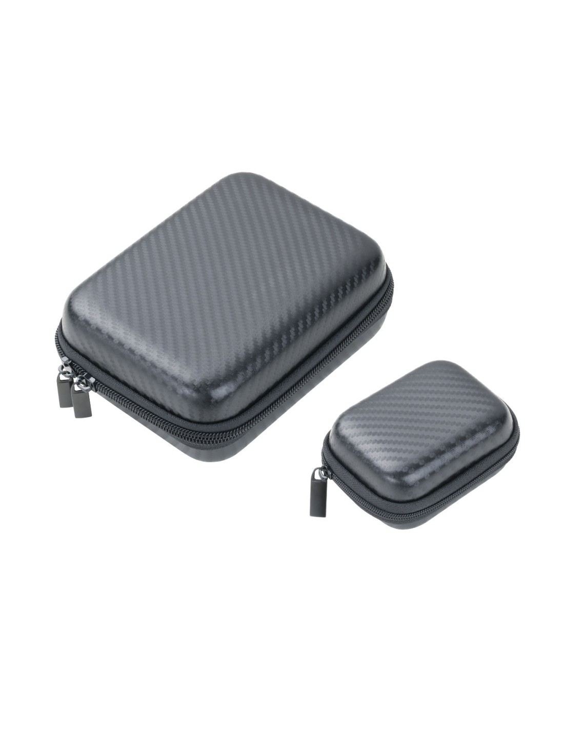 Set de 2 trousses d'organisation avec fermeture éclair, petite trousse : 2 compartiments intérieurs, grande trousse : 2 compartiments intérieurs et 1 insert élastique amovible pour les accessoires (Every Day Carry), plastique, velours, brillant, aspect carbone