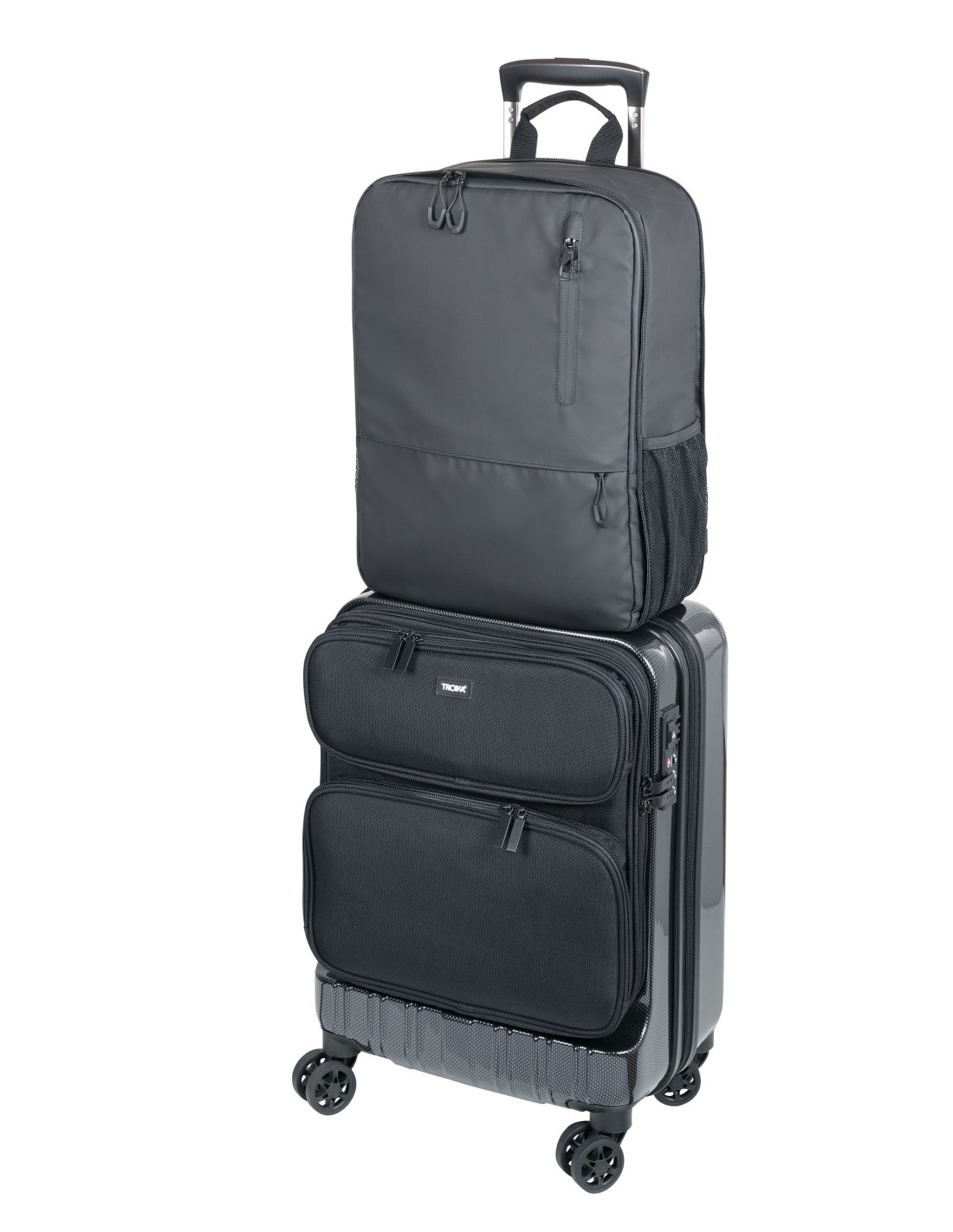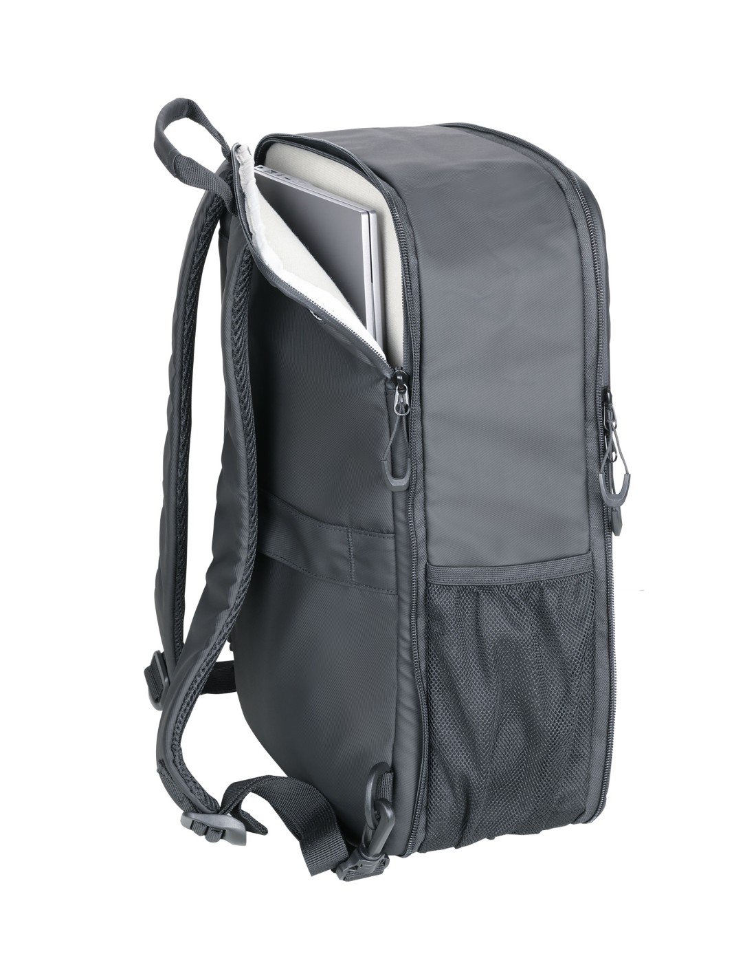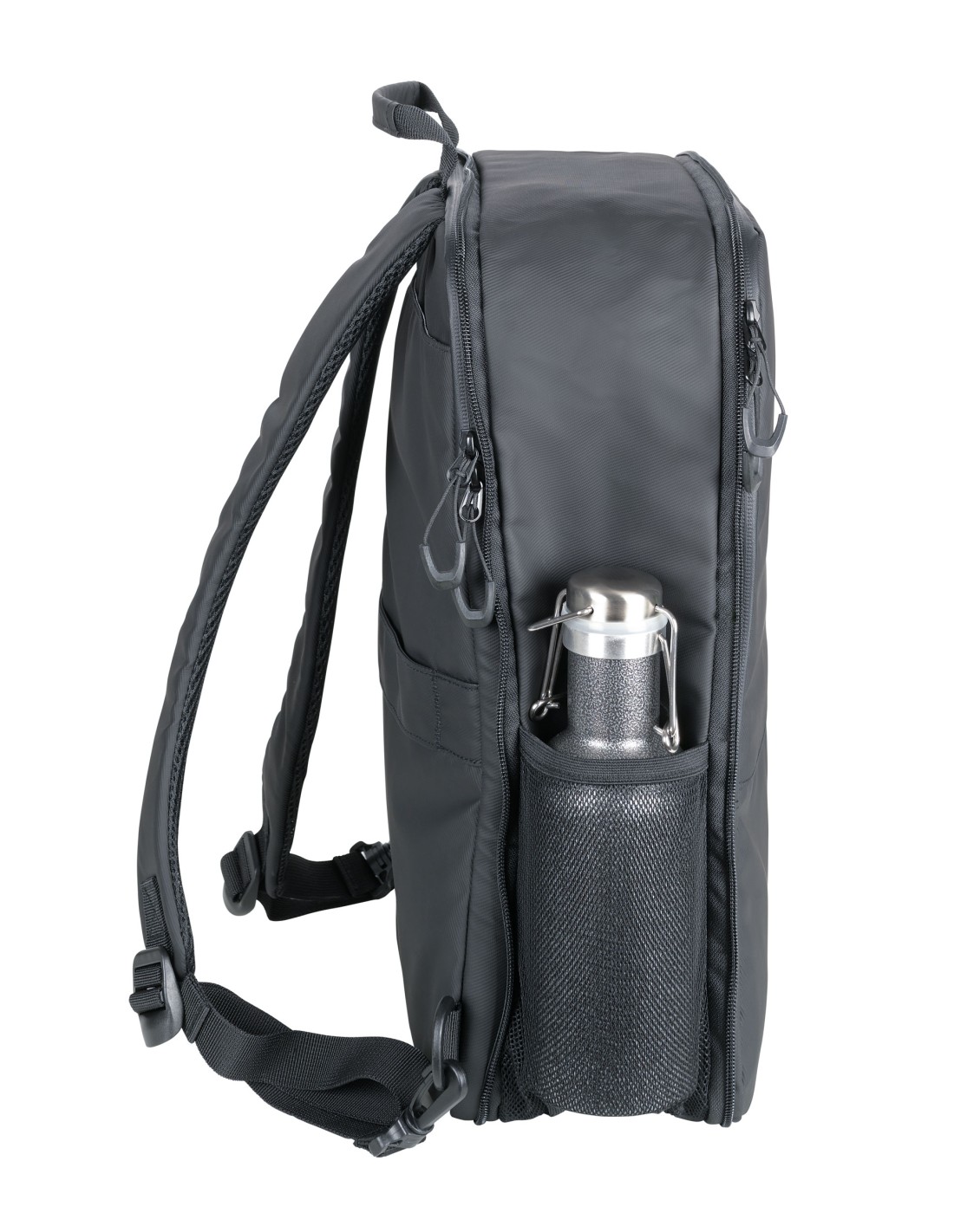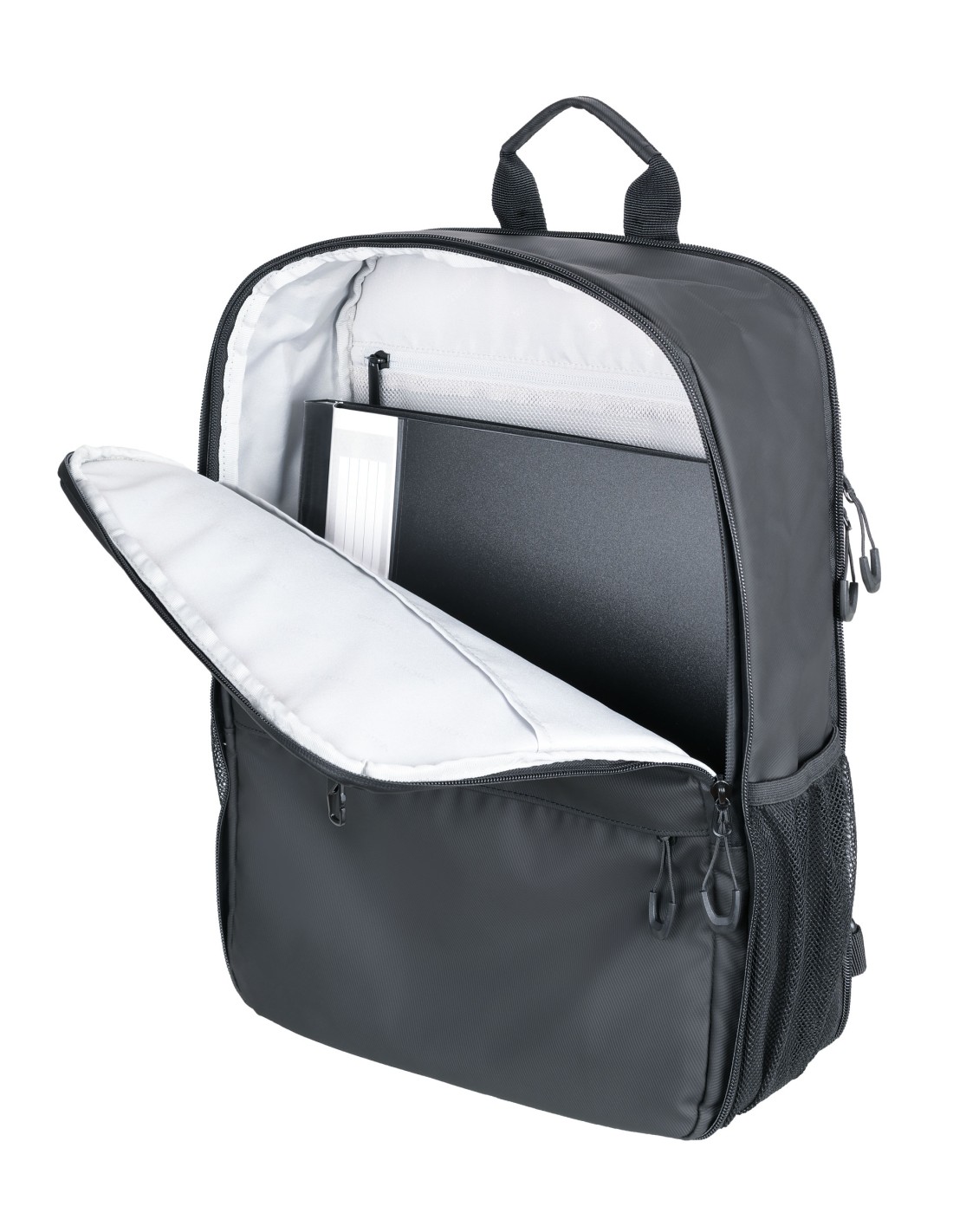 Sac à dos pour ordinateur portable avec 2 grands compartiments (compartiment rembourré pour ordinateur portable jusqu'à 16''et compartiment principal) avec fermeture éclair à double sens, extensible grâce à une fermeture éclair supplémentaire, 1 poche frontale avec curseur zippé dissimulable servant de mini-mousqueton (antivol) + poche frontale supplémentaire, expansée 2 poches en filet pour bouteille et parapluie, fond de sac renforcé, boucle pour la fixation au trolley, poignée de transport, sangles de sac à dos cachées, fermetures éclair extérieures hydrofuges, matériau résistant, protégé contre les éclaboussures (degré d'étanchéité IPX4), capacité extensible d'environ 6 litres à environ 14 litres, Tarpaulin: 80% Polyester, 20% Polyuréthane (PU), tarpaulin (bâche en PP), polyester, polyuréthane, noire