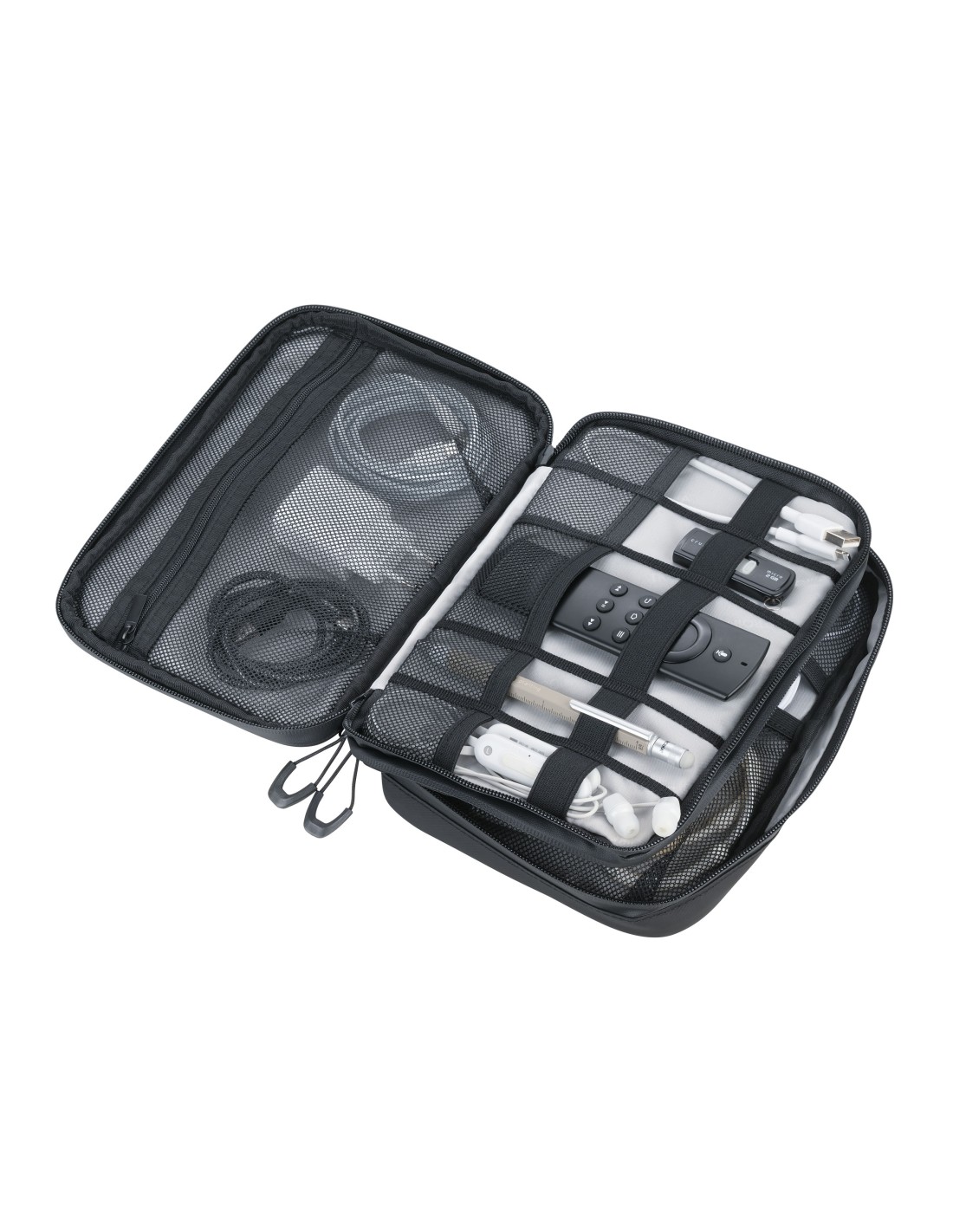 Pochette pour câbles avec 2 compartiments à fermeture à glissière, 2 compartiments intérieurs avec poches en filet et sangles élastiques pour les accessoires (Every Day Carry), boucle pour stylo, 1 compartiment extérieur, 100% polyester, boucle pour la fixation au trolley, tarpaulin (bâche en PP), noire