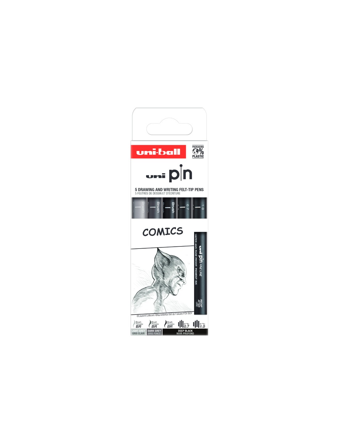 uni PIN Fineliner Comics Etui 5 pces, noir, gris clair et gris foncé