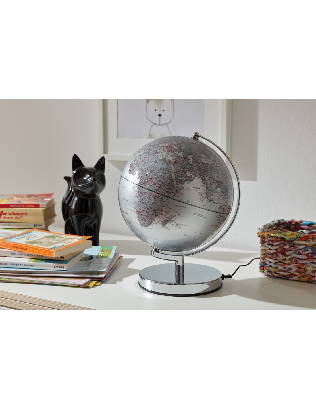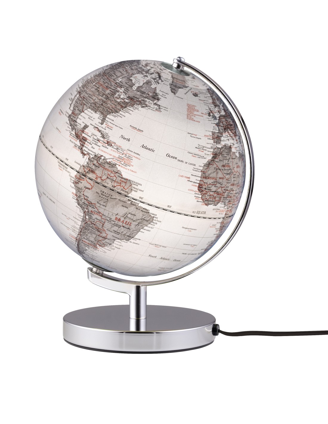 TROIKA TERRA LIGHT Globe illuminé 25cm, physical citylights, pied argenté
